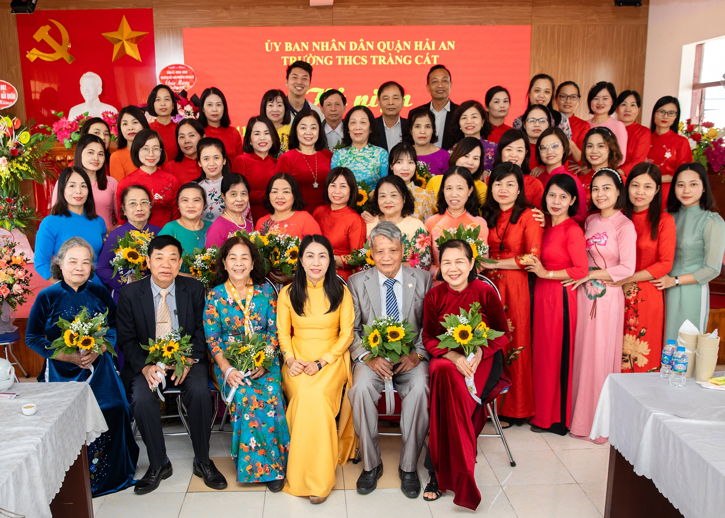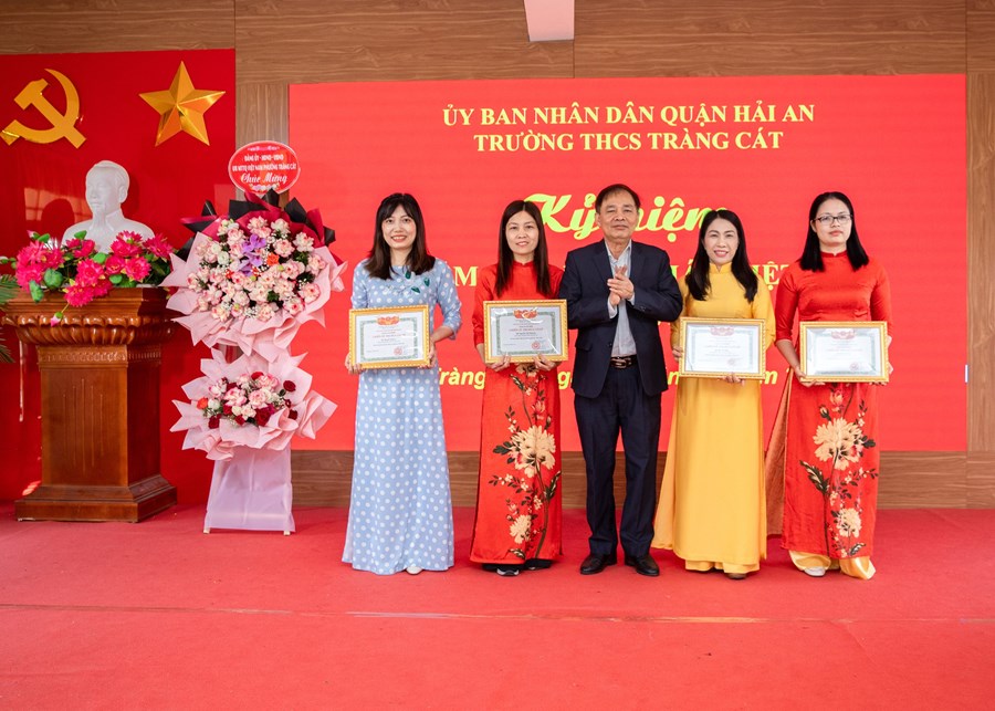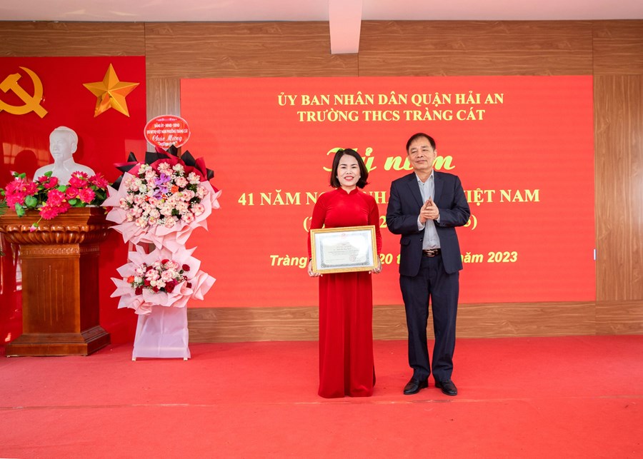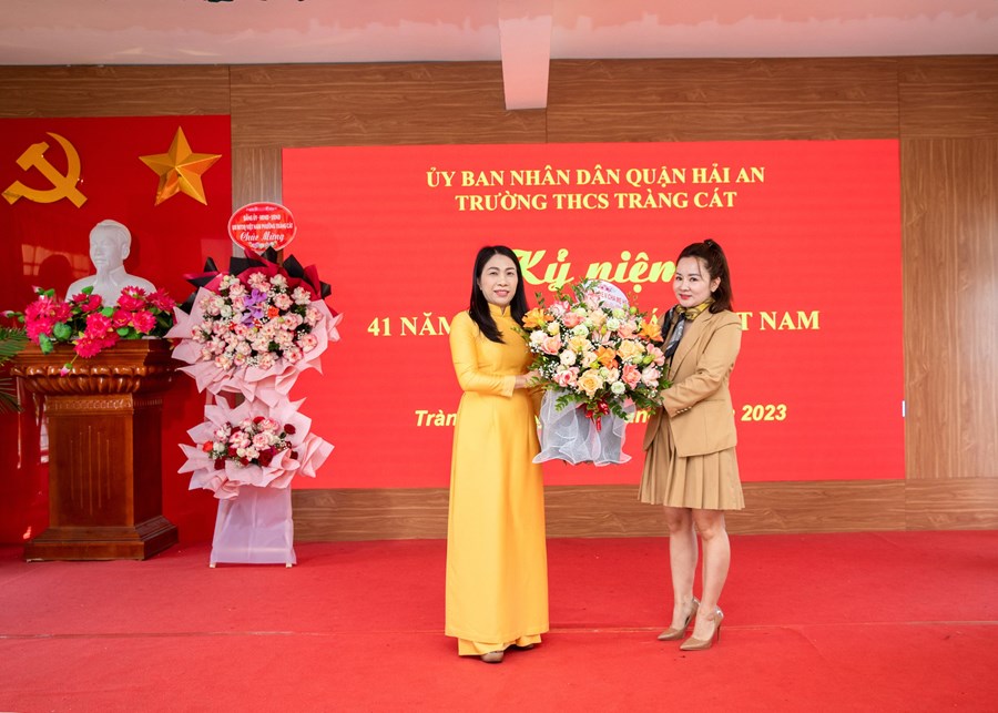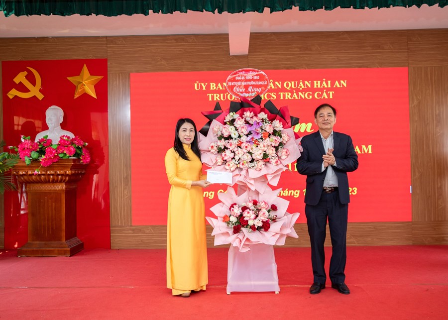 Về dự chung vui với các thầy giáo cô giáo nhà trường, các đồng chí lãnh đạo phường Tràng Cát, Lữ đoàn 602 Bộ tham mưu Hải quân, Hội cha mẹ học sinh đã có những lẵng hoa tươi thắm chúc mừng.