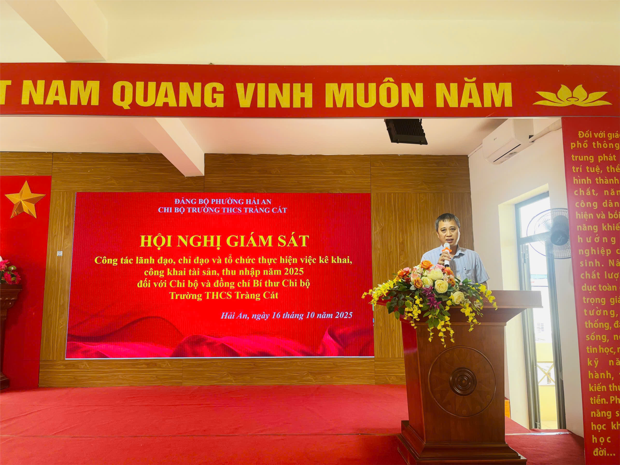 Thực hiện Quyết định số 07/QĐ-UBKTĐU, ngày 29/9/2025 của Đảng ủy phường về Quyết định Giám sát công tác lãnh đạo, chỉ đạo và tổ chức thực hiện việc kê khai, công khai tài sản, thu nhập năm 2025 đối với Chi bộ và đồng chí Bí thư Chi bộ Trường THCS Tràng Cát.