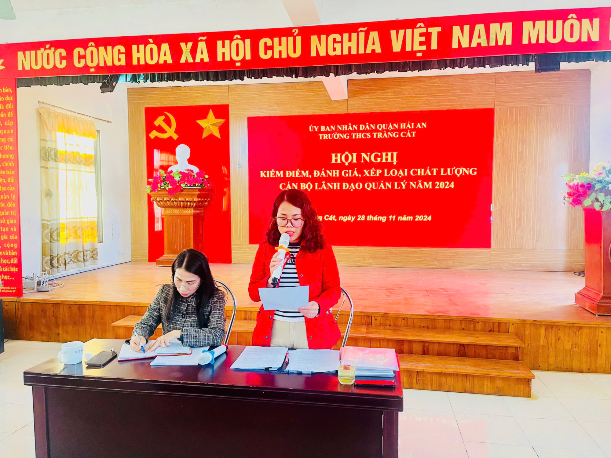 TRƯỜNG THCS TRÀNG CÁT TỔ CHỨC HỘI NGHỊ KIỂM ĐIỂM VÀ ĐÁNH GIÁ XẾP LOẠI CHẤT LƯỢNG NĂM 2024 ĐỐI VỚI TỔ CHỨC ĐẢNG, ĐẢNG VIÊN VÀ TẬP THỂ, CÁ NHÂN CÁN BỘ LÃNH ĐẠO, QUẢN LÝ
