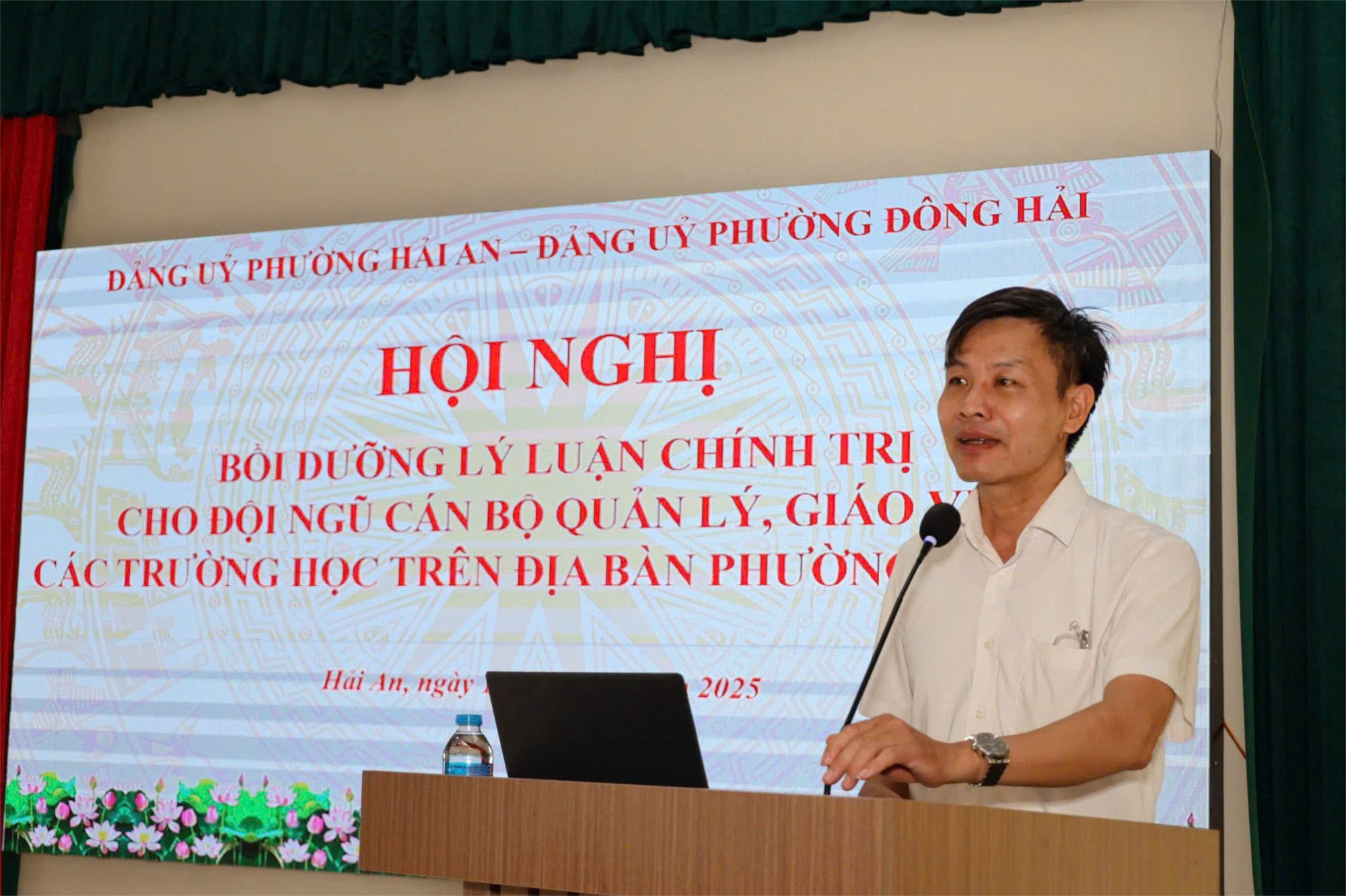🌼Phát biểu khai mạc Lớp bồi dưỡng, đồng chí Phạm Thị Chuyên - Phó Bí thư Thường trực Đảng ủy phường Hải An nhấn mạnh: tập huấn, bồi dưỡng lý luận chính trị cho cán bộ quản lý và giáo viên các trường học là nhiệm vụ thường xuyên, góp phần nâng cao nhận thức chính trị, cập nhật kiến thức mới về đường lối, chính sách của Đảng và tình hình đất nước, địa phương. Qua đó, cán bộ, giáo viên nâng cao bản lĩnh chính trị, đạo đức nghề nghiệp, đổi mới phương pháp quản lý và giảng dạy, góp phần hoàn thành tốt nhiệm vụ năm học. Đồng thời, góp phần xây dựng Đảng bộ phường Hải An trong sạch vững mạnh và thực hiện thắng lợi các mục tiêu phát triển kinh tế - xã hội của địa phương.