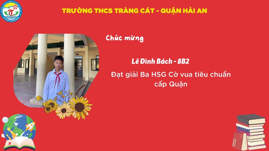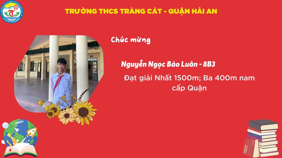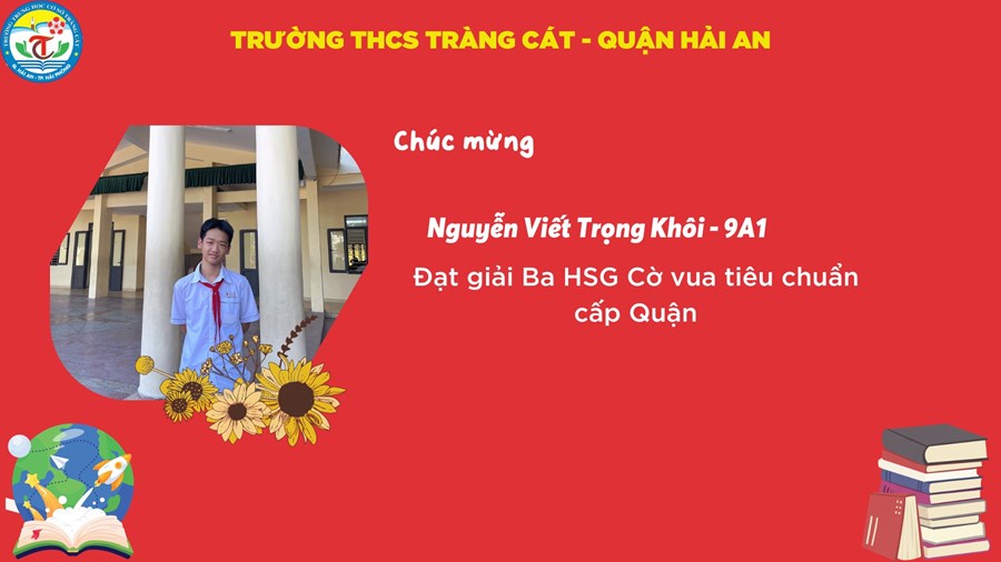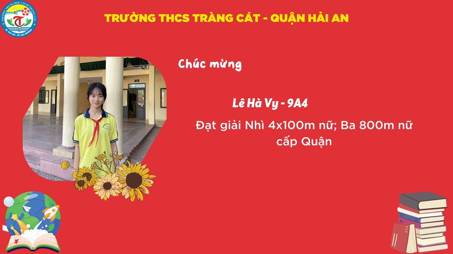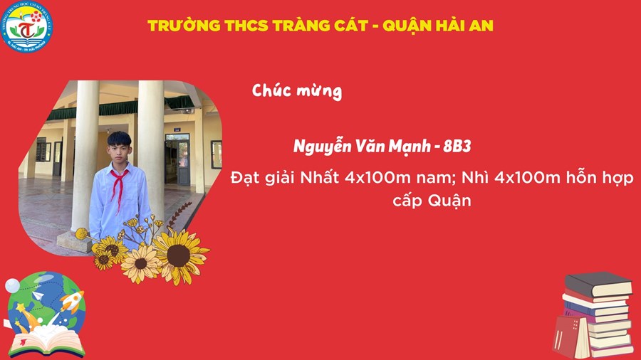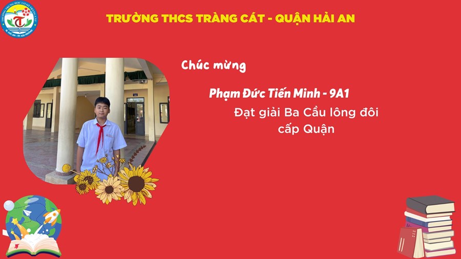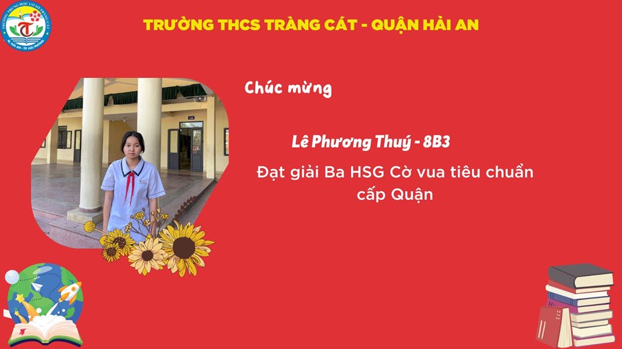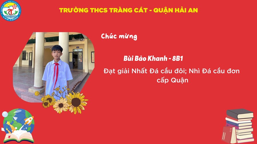 Trong kì thi HSG TDTT cấp quận năm học 2023-2024 diễn ra vào ngày 28,29/10/2023, trường THCS Tràng Cát có 19 em học sinh dự thi và thật tự hào nhà trường đã đạt 17 giải. Trong đó: 06 giải Nhất, 02 giải Nhì, 09 giải Ba.