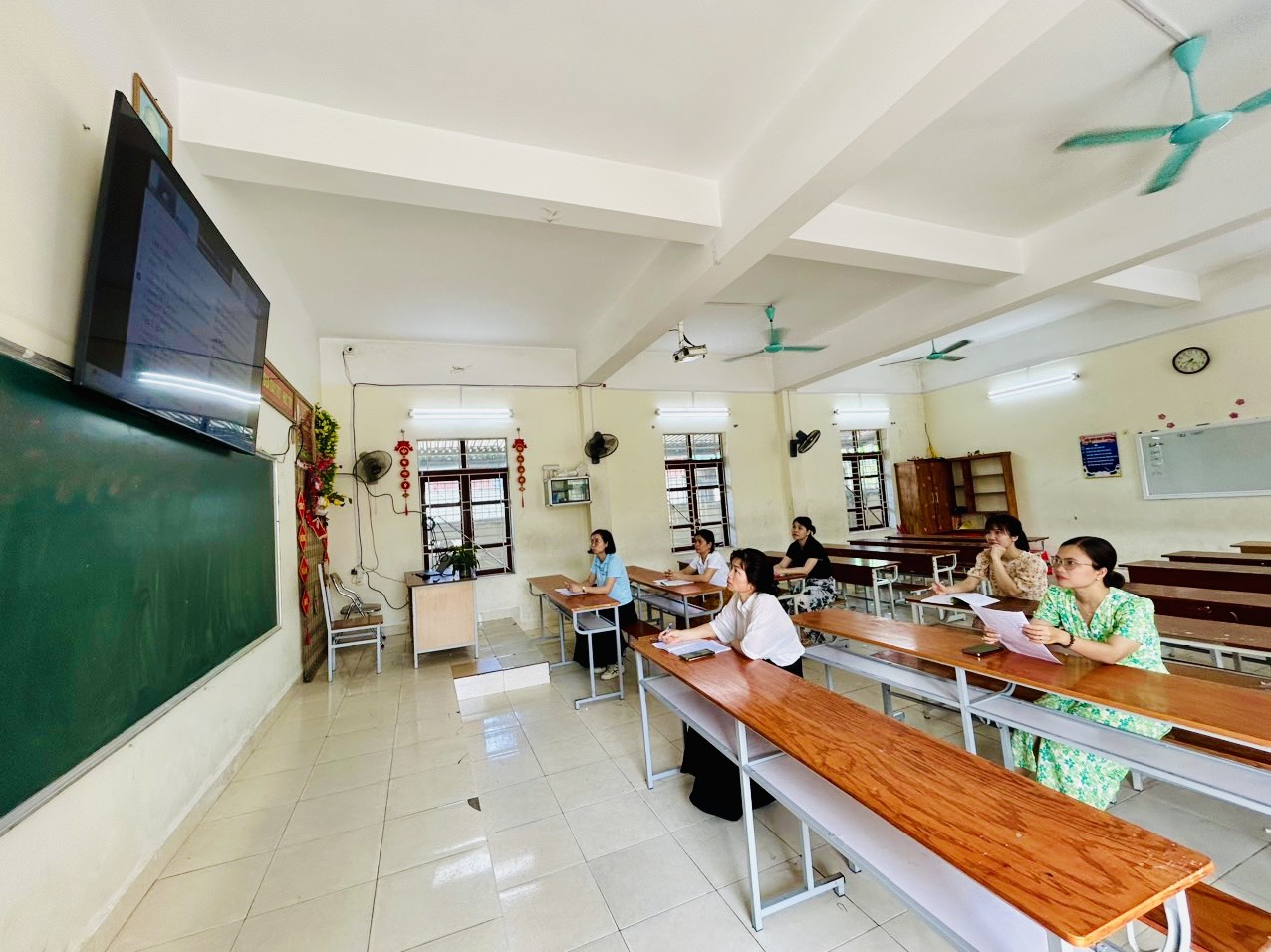 Thành phần tại điểm cầu trường THCS Tràng Cát đã triển khai bố trí đủ số phòng tập huấn đảm bảo mỗi môn học tập huấn tại 01 phòng theo lịch tập huấn và theo đúng bộ sách giáo khoa nhà trường đã lựa chọn