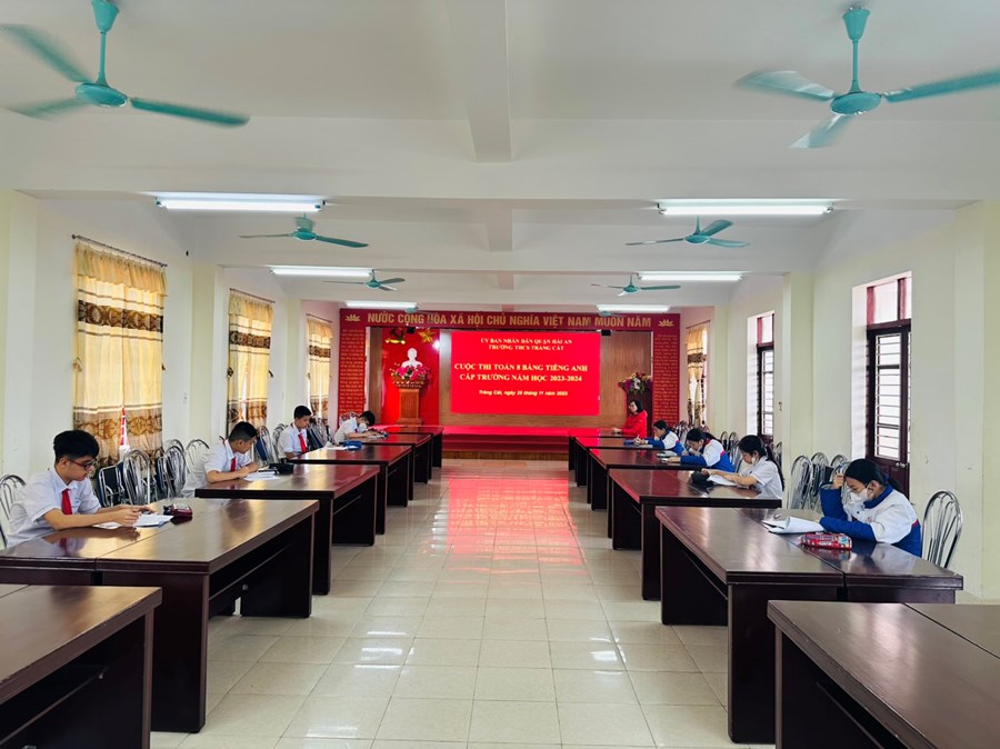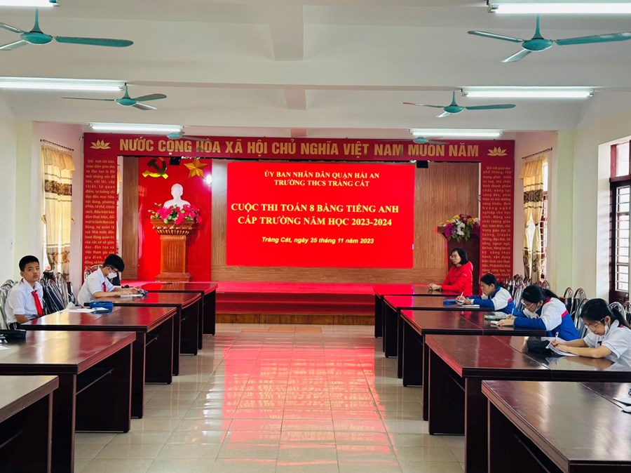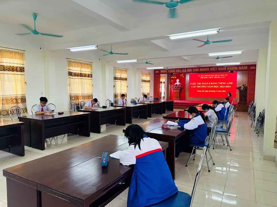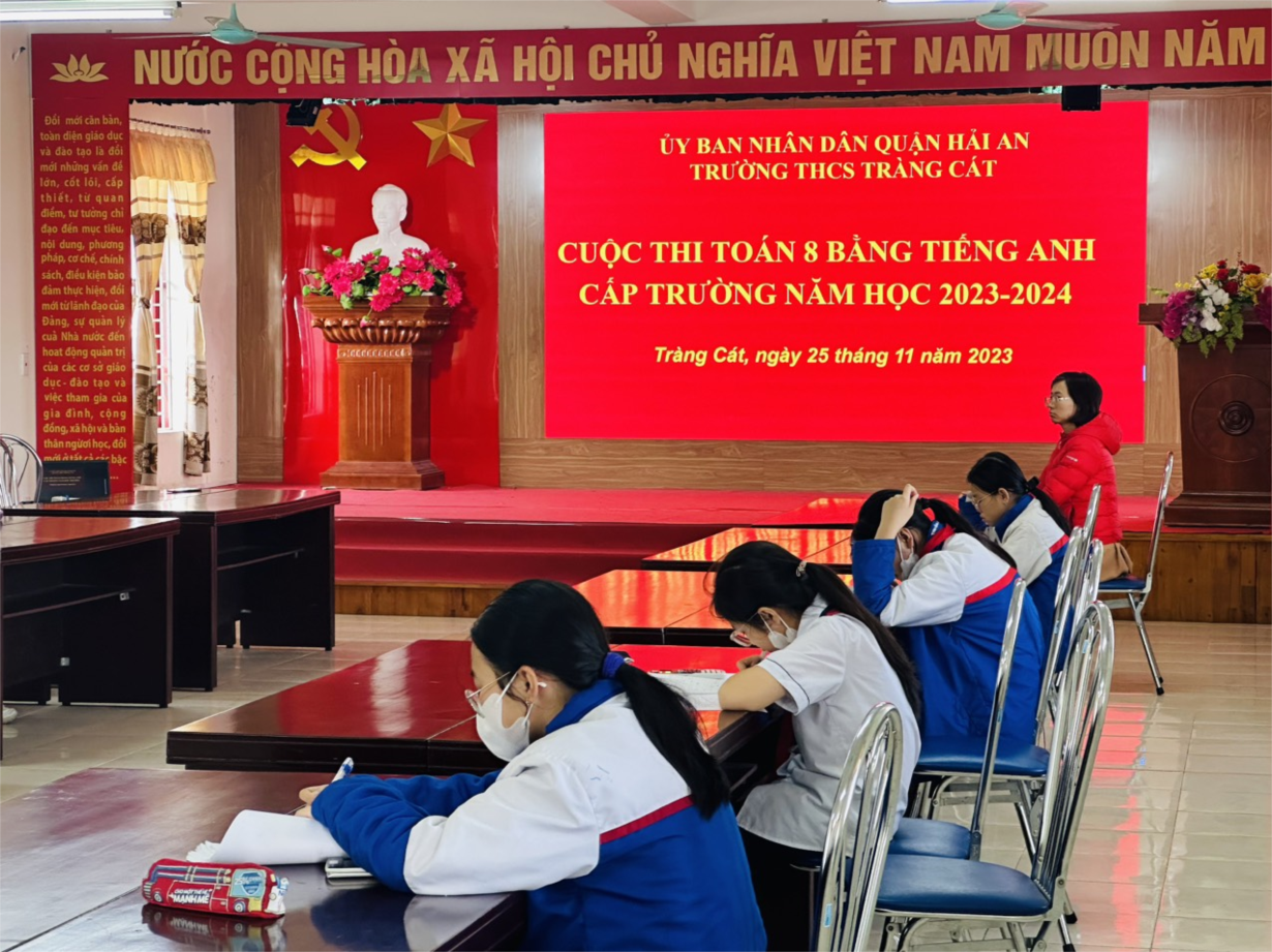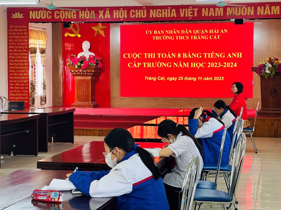Nhằm chuẩn bị tốt cho kỳ thi chọn học sinh giỏi trung học cơ sở giải toán bằng tiếng Anh cấp quận và thành phố năm học 2023 - 2024, sáng ngày 25/11/2023, Trường THCS Tràng Cát đã tổ chức kỳ thi giải toán bằng tiếng Anh cấp trường năm học 2023-2024 để chọn ra HSG tham gia kỳ thi cấp Quận.