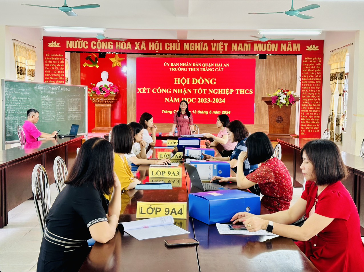 Ngày 13/5/2024 tại Hội đồng xét tốt nghiệp THCS Tràng Cát đã diễn ra phiên làm việc của Hội đồng xét công nhận tốt nghiệp THCS năm học 2023-2024 cho học sinh khối 9 của nhà trường.