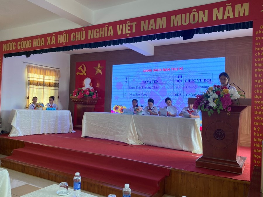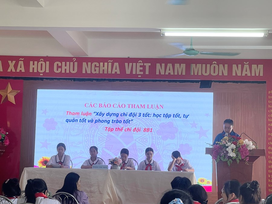 * Đại hội đã được nghe bản Báo cáo tổng kết hoạt động công tác Đội nhiệm kỳ năm học 2022– 2023 và Phương hướng hoạt động công tác Đội và phong trào thiếu nhi nhiệm kỳ năm học 2023 – 2024 và các tham luận đại diện cho chi đội 7C1, 8B1