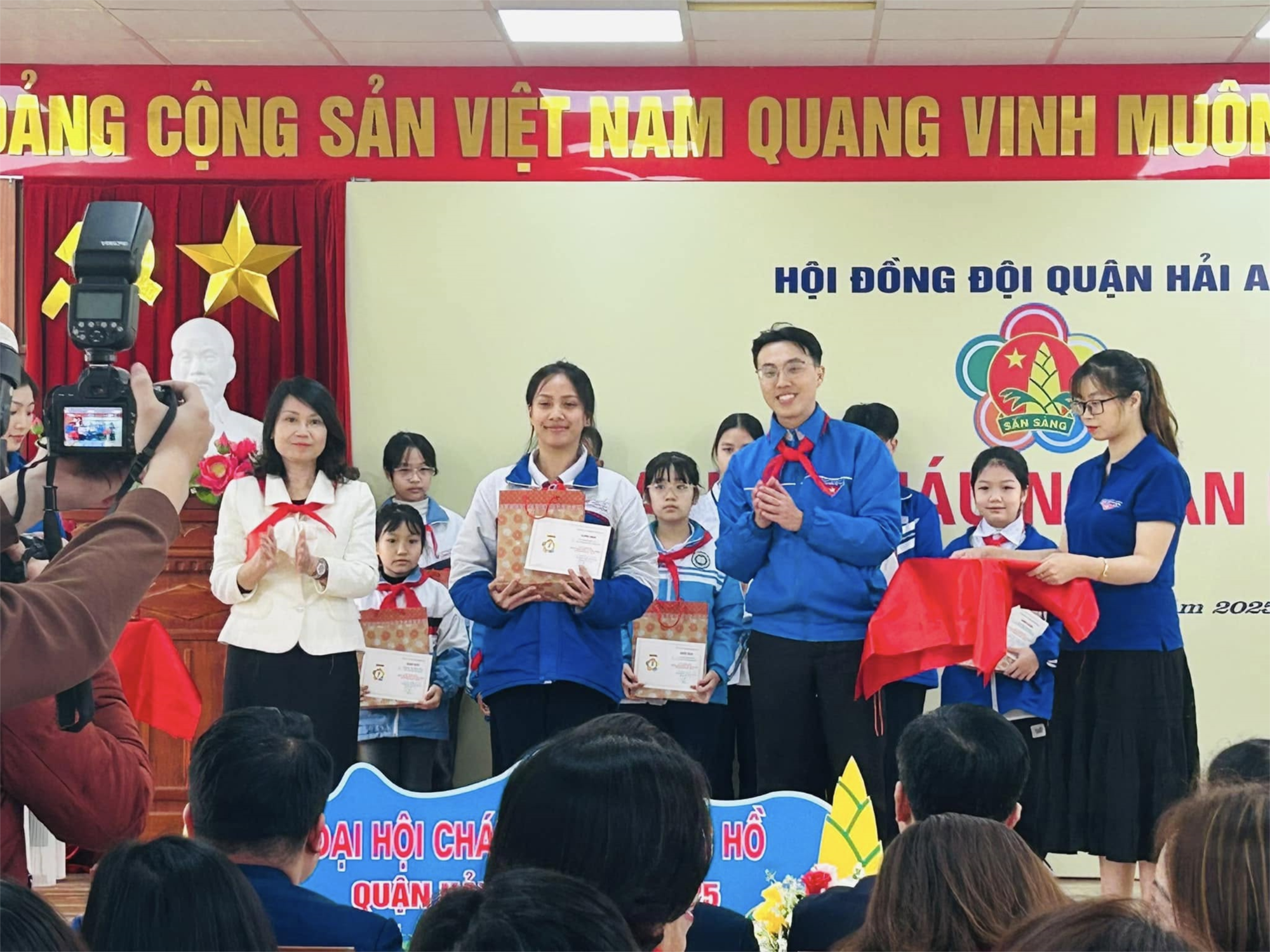 Tại Đại hội, các bạn đội viên xuất sắc của Liên đội được vinh danh, khen thưởng. Chúc cho các bạn học sinh nhà trường luôn chăm ngoan, học giỏi, xứng đáng là cháu ngoan của Bác Hồ kính yêu