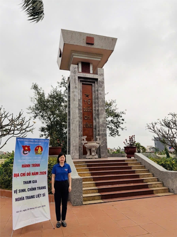Thiết thực chào mừng kỷ niệm 95 năm Ngày thành lập Đoàn TNCS Hồ Chí Minh (26/3/1931 – 26/3/2026), chiều ngày 26/3/2026, Liên đội – Chi đoàn Trường THCS Tràng Cát đã tổ chức hoạt động “Hành trình địa chỉ đỏ”, tham gia vệ sinh, chỉnh trang Nghĩa trang Liệt sĩ Tràng Cát.