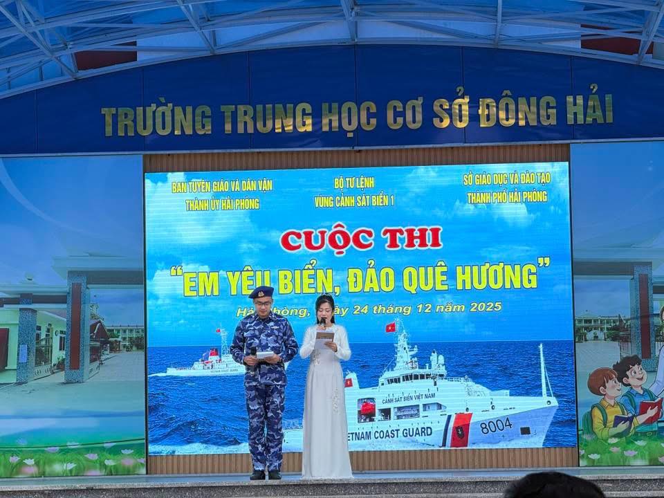 áng ngày 24/12, tại Trường THCS Đông Hải, Bộ Tư lệnh Vùng Cảnh sát biển 1 phối hợp với Ban Tuyên giáo và Dân vận Thành ủy, Sở Giáo dục và Đào tạo Hải Phòng tổ chức cuộc thi “Em yêu biển đảo quê hương” – sân chơi bổ ích, ý nghĩa nhằm giáo dục học sinh tình yêu biển đảo, nâng cao hiểu biết về truyền thống lực lượng Cảnh sát biển Việt Nam