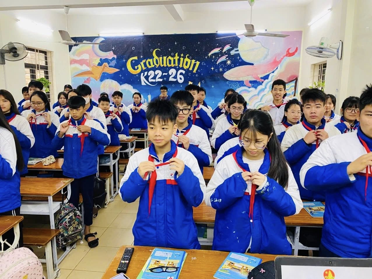 Trong giây phút thực hiện nghi lễ tháo khăn quàng đỏ, mỗi đội viên khối 9 đều mang trong mình niềm xúc động, tự hào, đồng thời thể hiện quyết tâm tiếp tục phấn đấu trong học tập, rèn luyện đạo đức, lý tưởng cách mạng, sẵn sàng trở thành lực lượng kế cận của Đoàn Thanh niên Cộng sản Hồ Chí Minh.