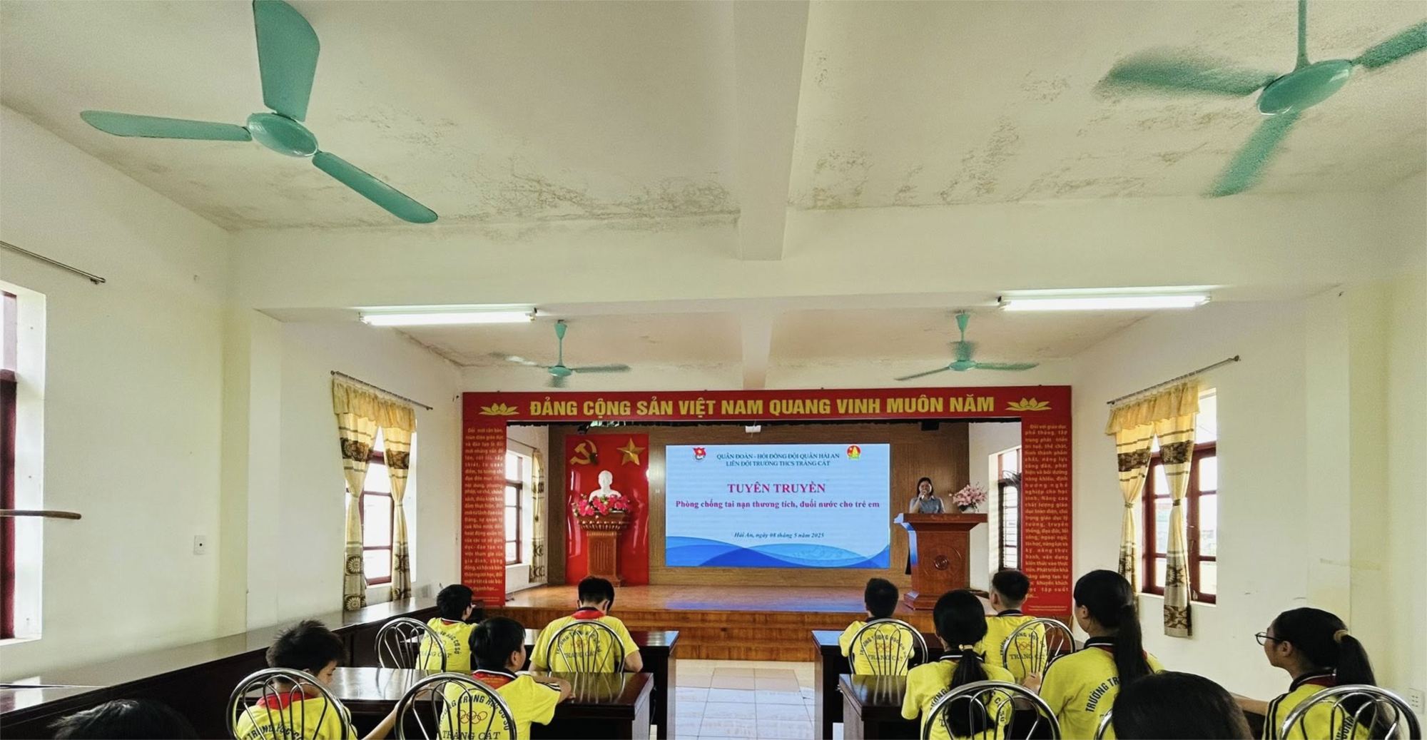 Nhằm nâng cao nhận thức, trang bị kỹ năng sống an toàn cho học sinh trong dịp hè sắp tới, Liên đội Trường THCS Tràng Cát đã tổ chức buổi tuyên truyền phòng, chống tai nạn thương tích và đuối nước cho toàn thể đội viên, học sinh nhà trường. Tại buổi sinh hoạt, các em được tìm hiểu về những nguyên nhân phổ biến dẫn đến tai nạn đuối nước như tắm sông, hồ không có người lớn giám sát, đùa nghịch gần ao hồ, hoặc không biết bơi. Bên cạnh đó, các em còn được hướng dẫn các kỹ năng cơ bản như cách xử lý khi gặp người bị đuối nước, kỹ năng bơi an toàn và cách gọi người lớn giúp đỡ khi xảy ra tình huống nguy hiểm. Buổi tuyên truyền đã thu hút sự quan tâm, tham gia sôi nổi của học sinh và nhận được sự đánh giá cao từ phụ huynh, giáo viên. Đây là một hoạt động thiết thực, góp phần giúp học sinh nâng cao ý thức bảo vệ bản thân, đồng thời lan tỏa thông điệp “An toàn là trên hết” trong cộng đồng học đường.