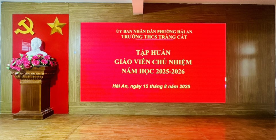 Thực hiện Kế hoạch tập huấn bồi dưỡng thường xuyên năm học 2025-2026, chiều ngày 15/8/2025, Trường THCS Tràng Cát đã tổ chức “Tập huấn công tác giáo viên chủ nhiệm lớp năm học 2025-2026” dưới sự hướng dẫn của cô giáo Nguyễn Thị Sâm cùng các cộng sự. Đây là buổi tập huấn nằm trong chuỗi hoạt động đào tạo giáo viên chủ nhiệm thường niên của nhà trường nhằm củng cố, nâng cao khả năng tổ chức, quản lý học sinh cho các giáo viên chủ nhiệm đầu năm học.