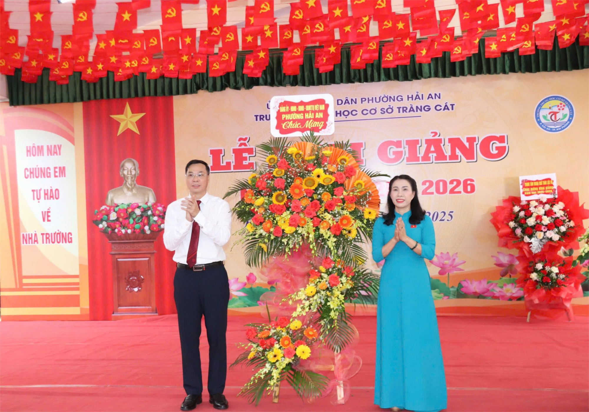 Nhân dịp này, lãnh đạo phường Hải An đã tặng hoa chúc mừng thầy và trò nhà trường. Các đơn vị kết nghĩa, Ban đại diện cha mẹ học sinh cũng trao tặng lẵng hoa tươi thắm, thể hiện sự quan tâm và đồng hành cùng sự nghiệp giáo dục.