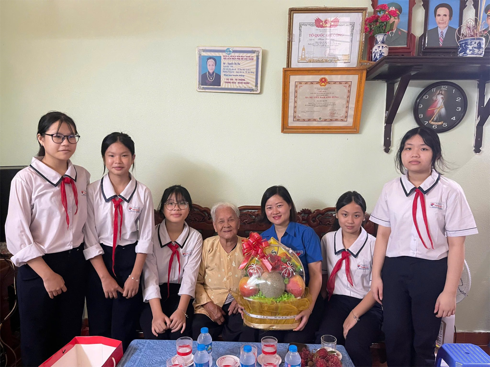Sáng ngày 24/7/2025, Chi đoàn giáo viên cùng các đội viên tiêu biểu khối 8 đã đến thăm hỏi, động viên và tặng quà Mẹ Việt Nam anh hùng Nguyễn Thị The – một biểu tượng sống của lòng yêu nước, tinh thần hy sinh và đức hy sinh cao cả. Tại buổi gặp gỡ, các thầy cô và học sinh đã ân cần thăm hỏi sức khỏe, bày tỏ lòng biết ơn sâu sắc và kính dâng phần quà nhỏ thể hiện tấm lòng tri ân của tuổi trẻ nhà trường.