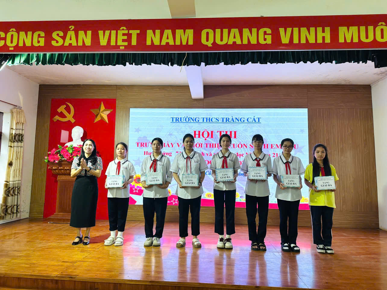 Hôm nay, ngày 21/4/2025 trường THCS Tràng Cát long trọng tổ chức Hội thi “Trưng bày và giới thiệu cuốn sách em yêu” Hội thi vinh dự chào đón: