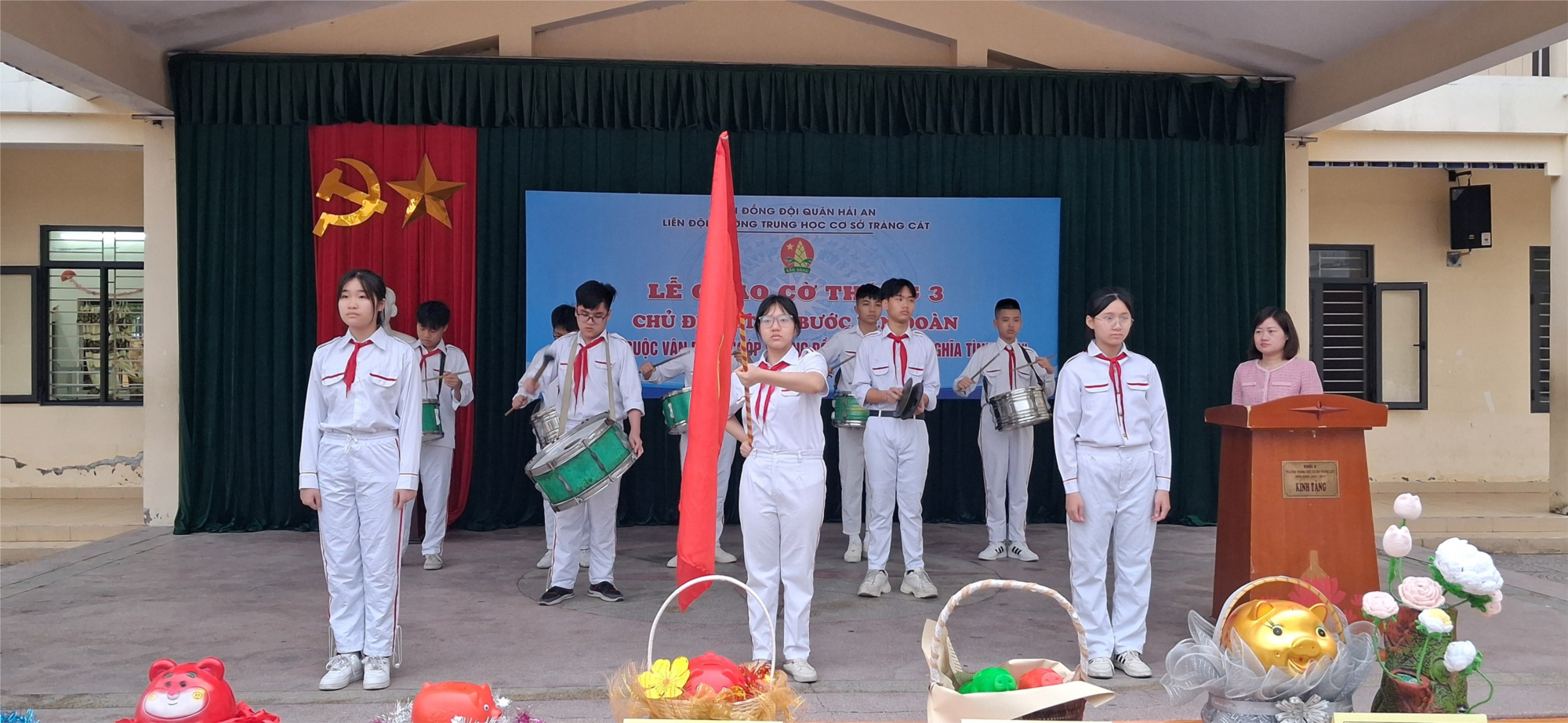 cờ, cô giáo Đặng Phương Thảo - Tổng phụ trách đã nhận xét, đánh giá kết quả hoạt động tháng 2 và triển khai các kế hoạch tháng 3. Phát động thi đua cao điểm lập thành tích chào mừng 115 năm ngày Quốc tế phụ nữ ( 8/3/1910 – 8/3/2025) và 94 năm ngày Thành lập Đoàn TNCS Hồ Chí Minh (26/3/1931 - 26/3/2025).