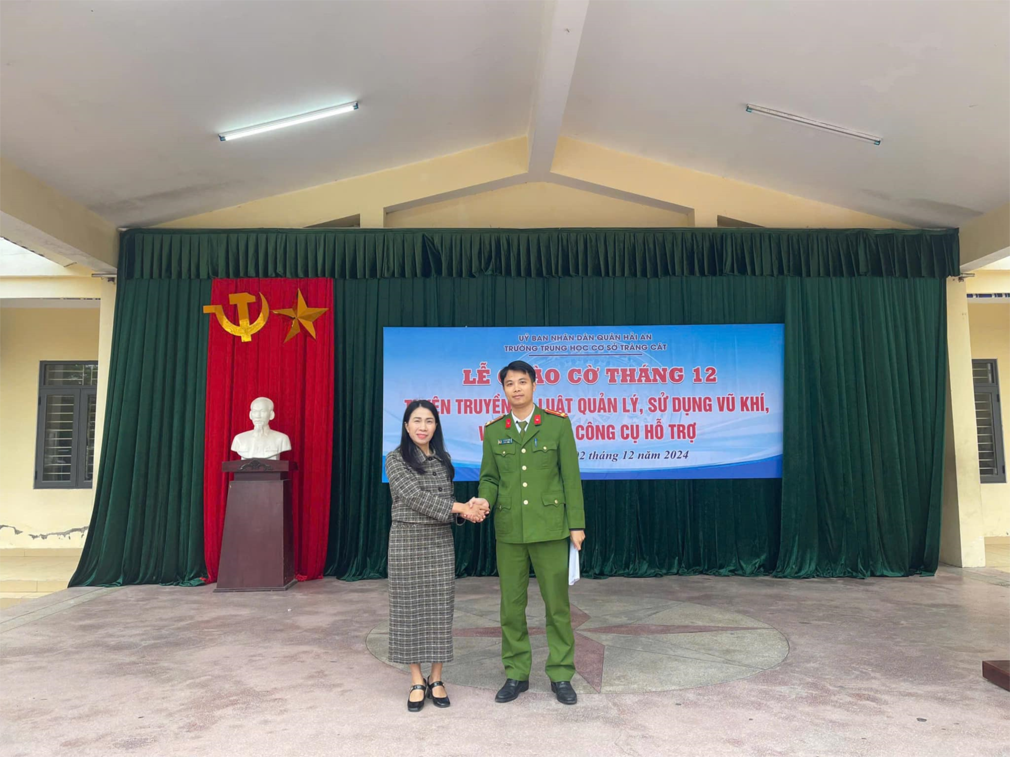 Ngày 02/12/2024, Trường THCS Tràng Cát tổ chức tuyên truyền, phổ biến, giáo dục pháp luật về về Luật Quản lý, sử dụng vũ khí, vật liệu nổ, công cụ hỗ trợ