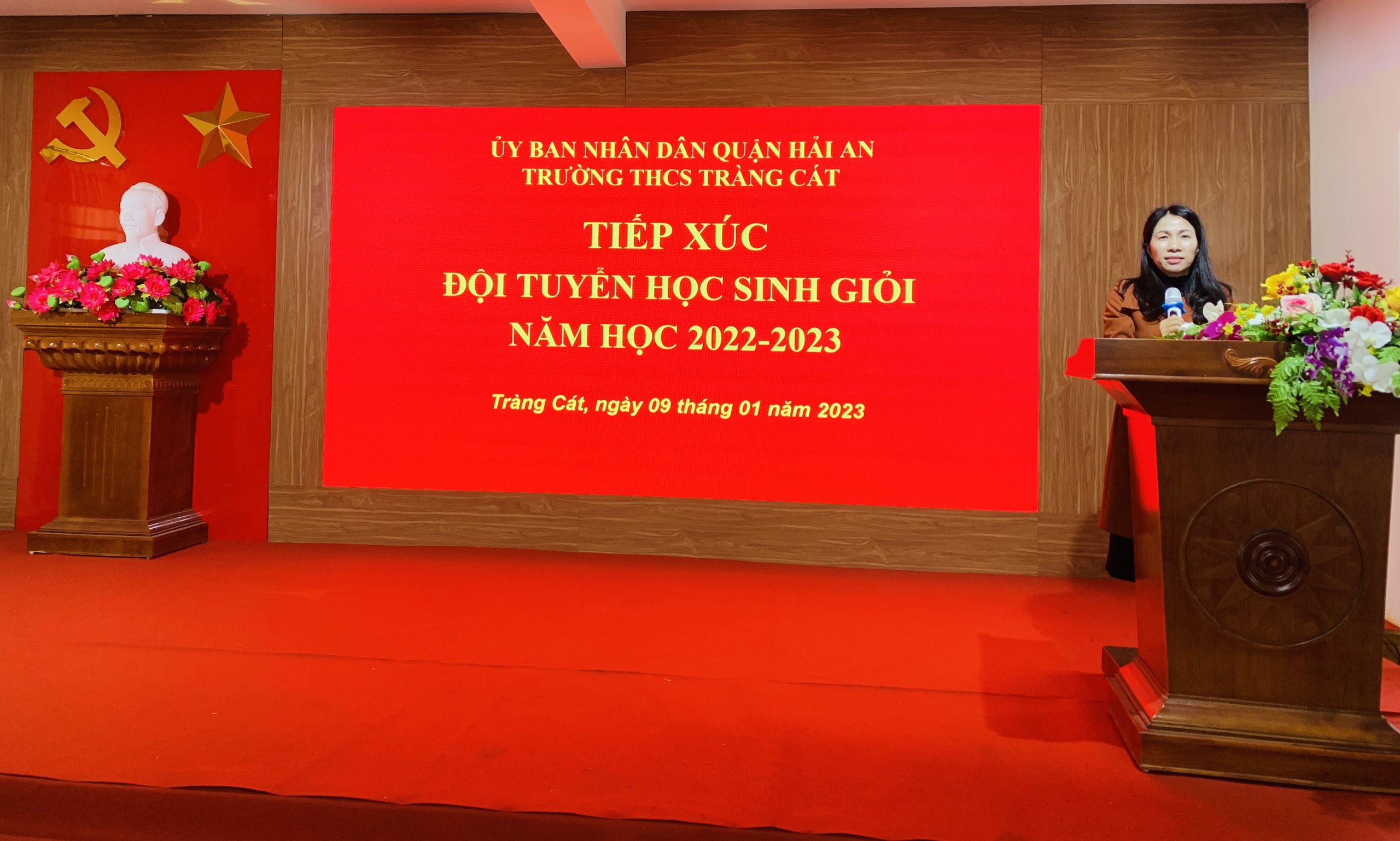 Tại buổi gặp gỡ thân mật các đội tuyển thi học sinh giỏi năm 2022, Cô giáo Bùi Thị Hiên đại diện Ban Giám hiệu nhà trường đã có những lời dặn dò, truyền đạt những kinh nghiệm và gửi lời chúc thành công đến các con trong đội tuyển. Cô giáo cũng đề nghị các thầy, cô phụ trách các đội tuyển tiếp tục củng cố kiến thức, kinh nghiệm làm bài cho học sinh, các em học sinh với kiến thức và kinh nghiệm được các thầy, cô giáo trang bị hãy bình tĩnh, tự tin, tập trung trí tuệ, nêu cao tinh thần quyết tâm để giành kết quả cao nhất trong kỳ thi sắp tới.