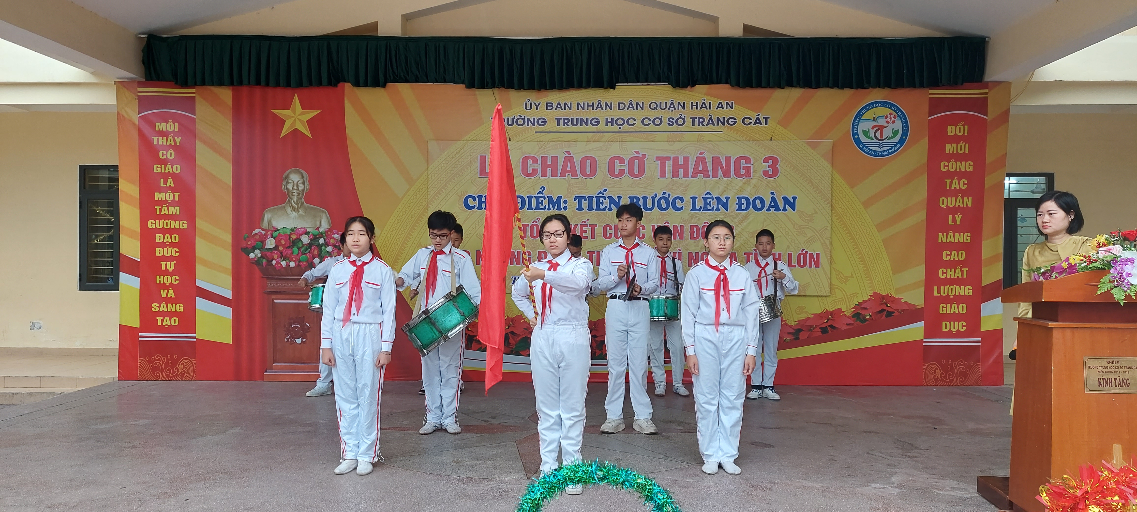 Ngày 06/3/2023, Liên đội trường THCS Tràng Cát long trọng tổ chức Lễ chào cờ tháng 3 và tổng kết cuộc vận động “Góp những đồng tiền nhỏ vì nghĩa tình lớn - Tặng quà đầu xuân giúp bạn nghèo và nạn nhân chất độc da cam” năm 2023.