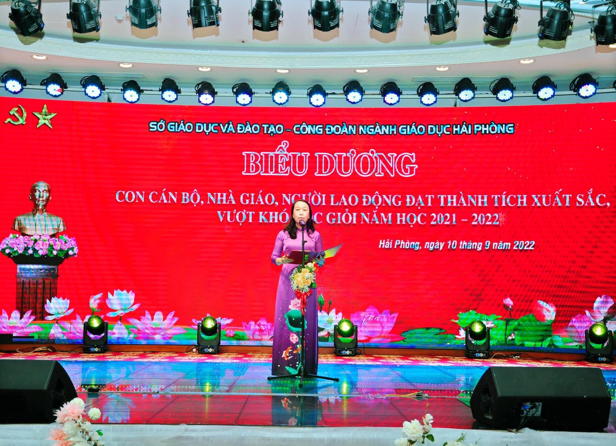 Dự Hội nghị có các đồng chí: Bùi Văn Kiệm, Giám đốc Sở GD&ĐT TP Hải Phòng, Lâm Tuyết Trinh–Chủ tịch Công đoàn ngành Giáo dục TP Hải Phòng; cùng đại diện lãnh đạo các đơn vị có liên quan và 302 học sinh con cán bộ, nhà giáo, người lao động được biểu dương.