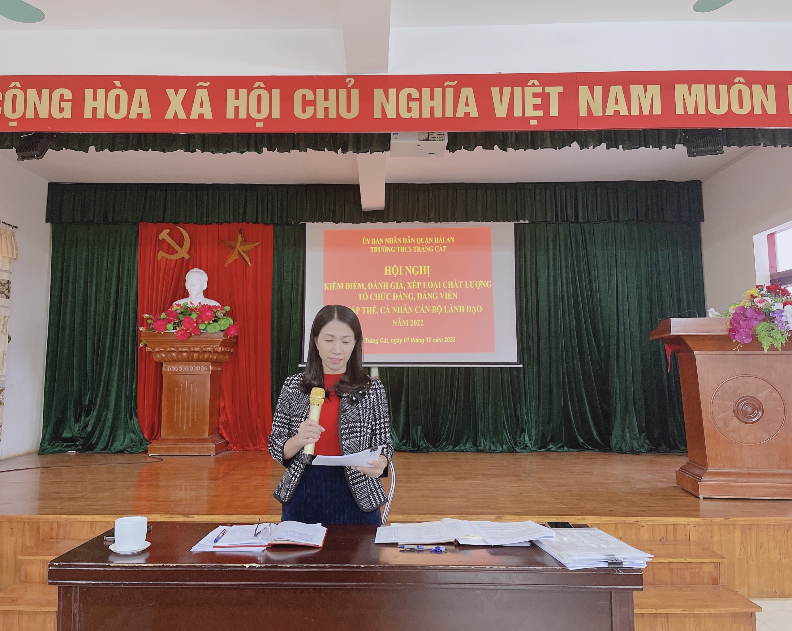 Vào hồi 15h00 ngày 01/12/2022, chi bộ Trường THCS Tràng Cát tổ chức Hội nghị kiểm điểm, đánh giá xếp loại chất lượng năm 2022 đối với tổ chức đảng, đảng viên và tập thể, cá nhân cán bộ lãnh đạo, quản lý các cấp năm 2022.