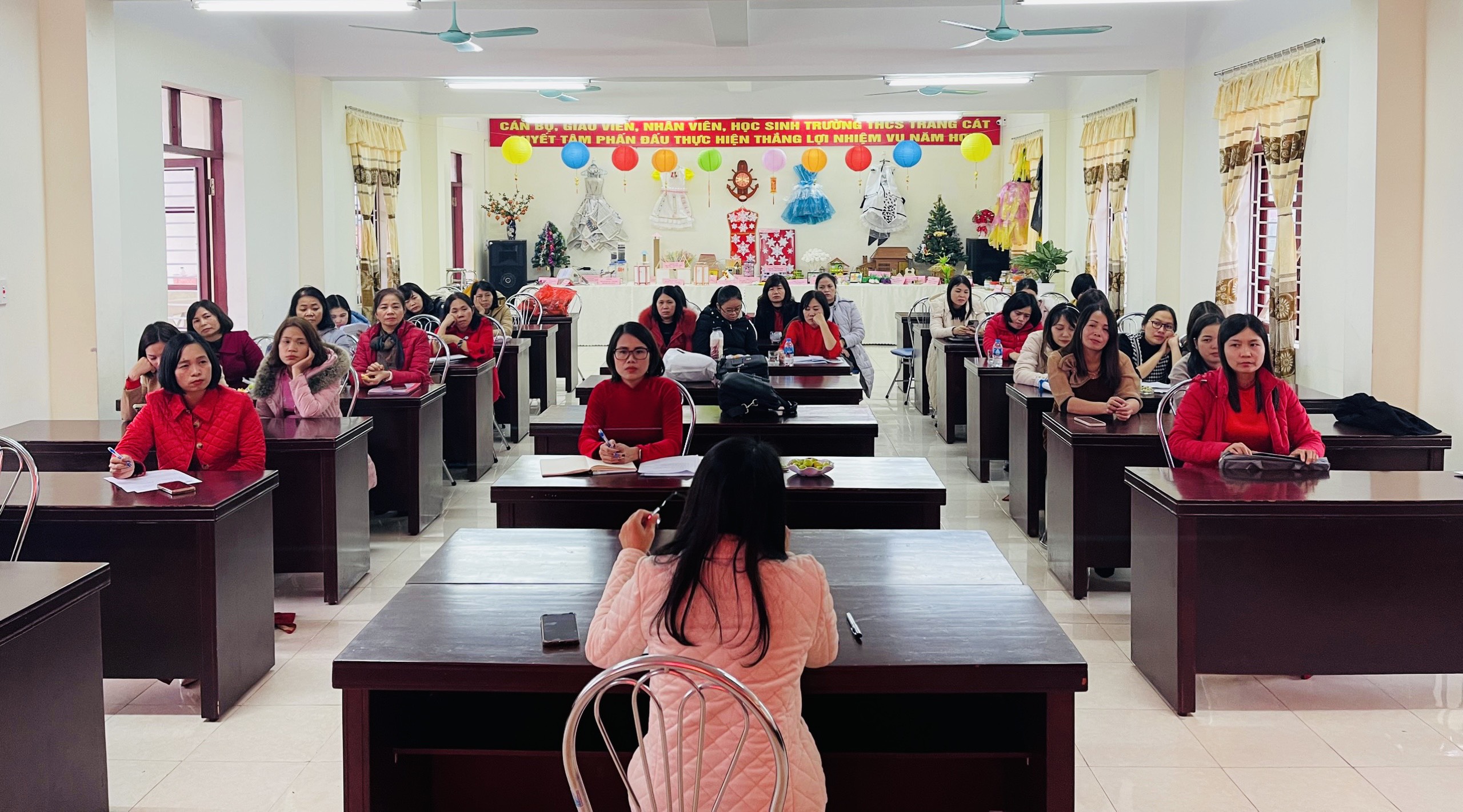 Tại Hội nghị, Cô giáo Bùi Thị Hiên-Hiệu trưởng thay mặt nhà trường báo cáo sơ kết học kì I năm học 2022-2023 nhằm đánh giá những kết quả đã đạt được, rút kinh nghiệm những mặt còn tồn tại, đề ra phương hướng phấn đấu để hoàn thành xuất sắc nhiệm vụ năm học.