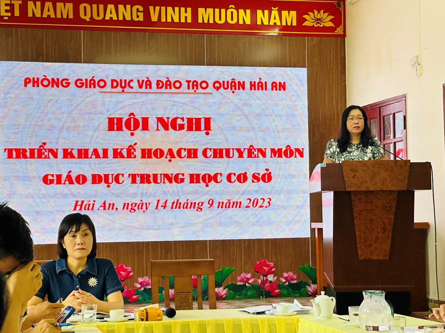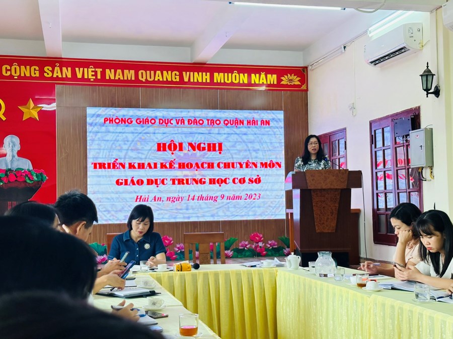 Thực hiện kế hoạch số 189/KH-UBND ngày 16/8/2023 của UBND quận Hải An về việc triển khai Kế hoạch công tác giáo dục và đào tạo năm học 2023-2024, ngày 14/9/2023, Phòng GD& ĐT quận Hải An tổ chức Hội nghị triển khai Kế hoạch chuyên môn GD THCS năm học 2023- 2024.