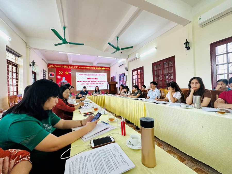 Tại hội nghị, Phòng GD&ĐT đã triển khai dự thảo kế hoạch chuyên môn GD THCS năm học 2023- 2024 tập trung 8 nhiệm vụ trọng tâm, giải đáp ý kiến của các nhà trường và định hướng các giải pháp triển khai trong năm học 2023-2024 phù hợp với thế mạnh của từng trường để duy trì ổn định, tiếp tục phát huy kết quả và các thành tích đạt được của những năm học trước.