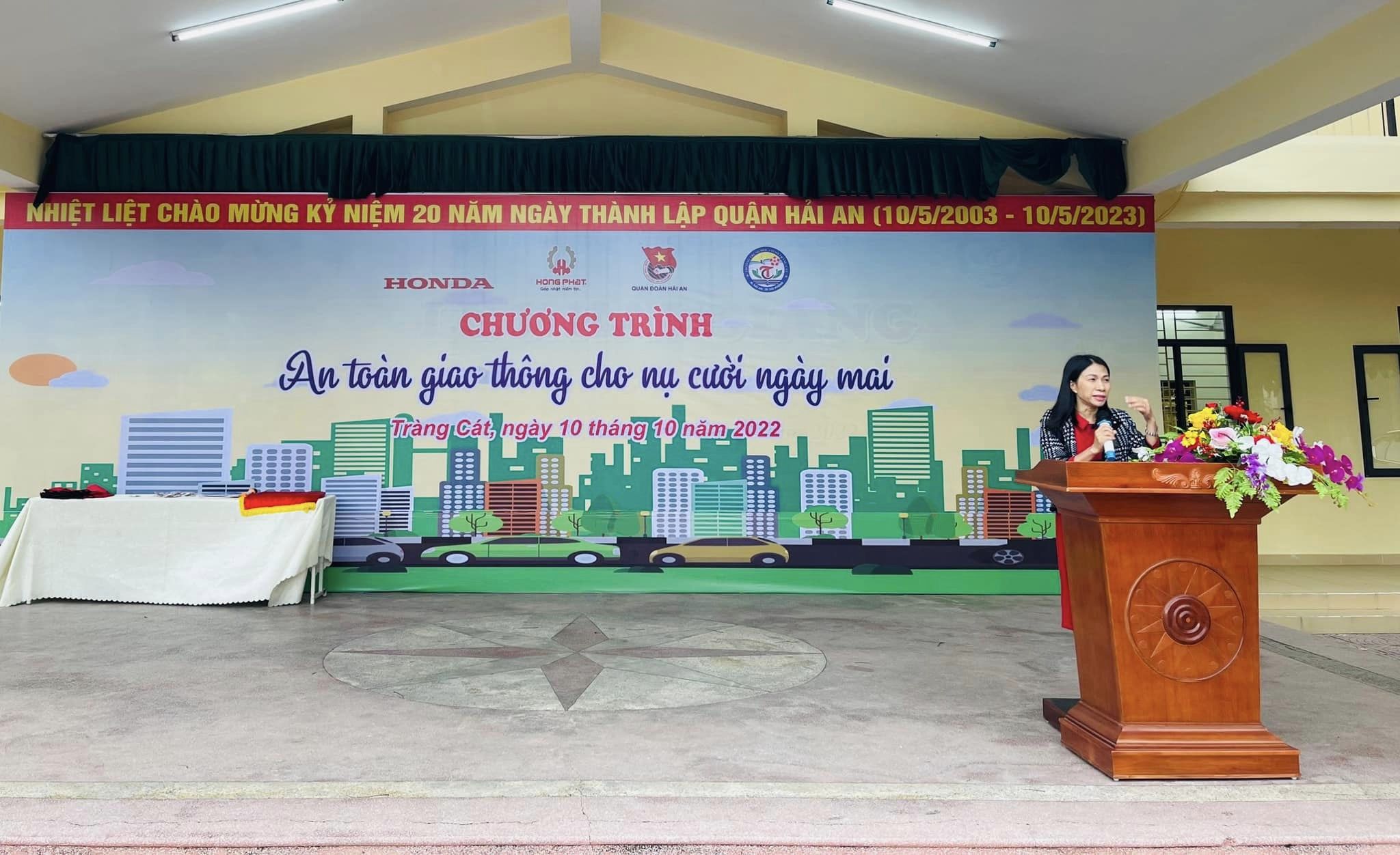 Sáng nay, ngày 10 tháng 10 năm 2022, Liên đội trường THCS Tràng Cát tổ chức lễ chào cờ tháng 10- Tuyên truyền an toàn giao thông cho 100% học sinh toàn trường. Tham dự chương trình có anh Đào Xuân Huy – Hướng dẫn viên lái xe an toàn công ty cổ phần ô tô xe máy Hồng Phát, Ban giám hiệu nhà trường, giáo viên Tổng Phụ trách, các thầy cô giáo chủ nhiệm và các em học sinh đã có mặt đông đủ.