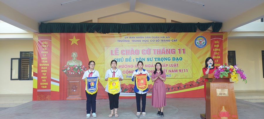 Sáng ngày 31/10/2022, tại trường THCS Tràng Cát, Liên đội tổ chức Lễ chào cở tháng 11 với chủ đề "Tôn sư trọng đạo; Hưởng ứng ngày pháp luật nước Cộng Hòa Xã Hội Chủ Nghĩa Việt Nam".