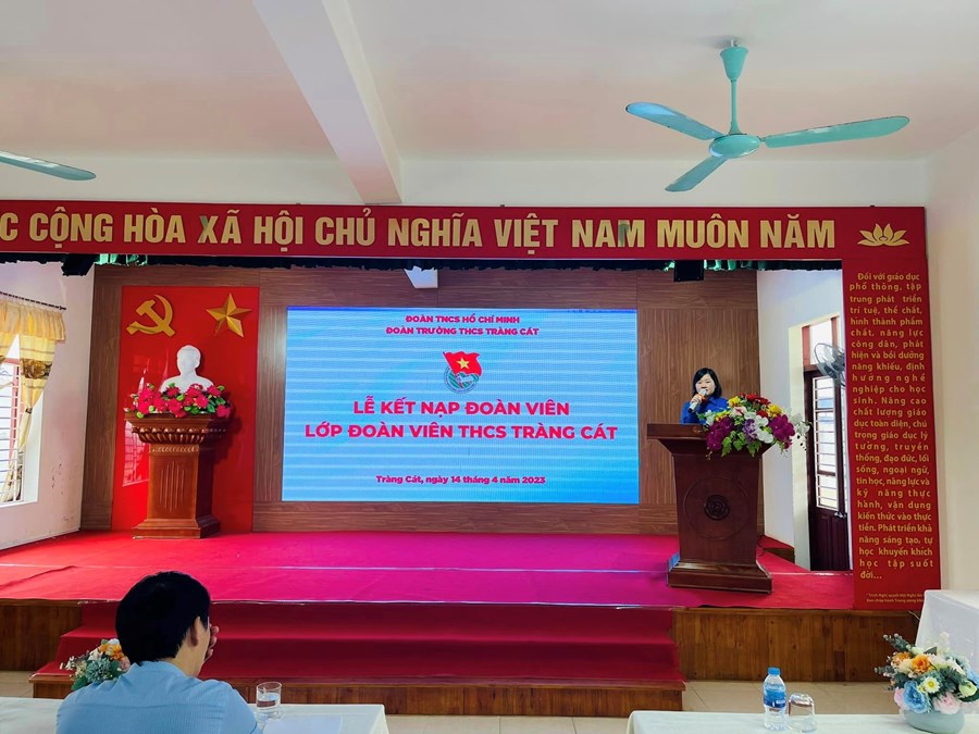 em học sinh của trường THCS Tràng Cát được kết nạp Đoàn hôm nay là những thành viên tiêu biểu của “Lớp đoàn viên 92 năm ngày thành lập Đoàn TNCS Hồ Chí Minh (26/03/1931 - 26/03/2023)”. Các em đều là những thanh niêu ưu tú, có phẩm chất, đạo đức tốt, có nhiều cố gắng, nỗ lực trong học tập.