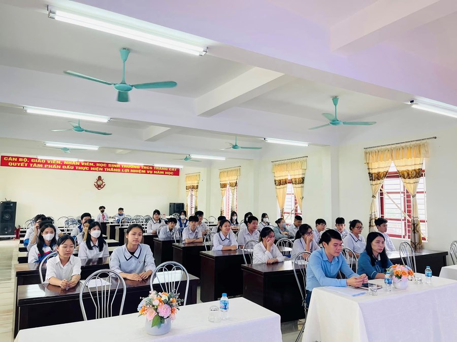 Trong buổi lễ, nhà trường vinh dự được đón tiếp đ/c Phạm Văn Duy - Bí thư đoàn phường Tràng Cát cùng sự hiện diện và chỉ đạo của BGH: Cô Bùi Thị Hiên - Bí thư Chi bộ, Hiệu trưởng nhà trường và các thầy cô giáo, các em học sinh khối 9 trường THCS Tràng Cát.