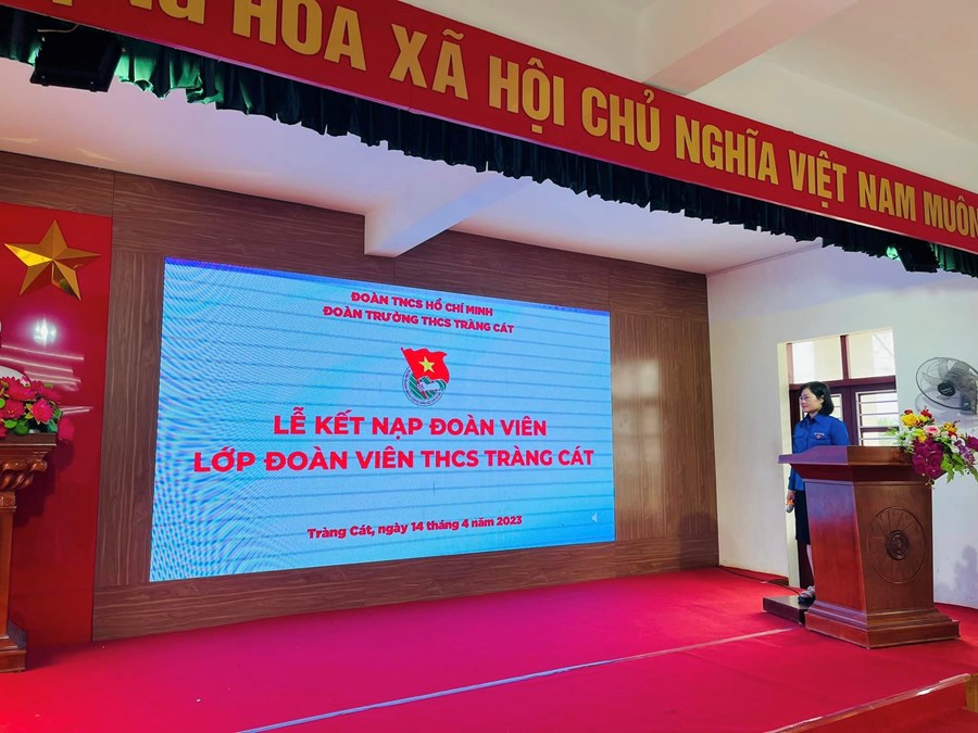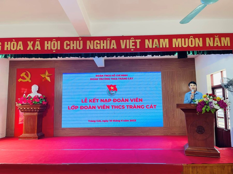 Sáng ngày 14/4/2023 Chi đoàn trường THCS Tràng Cát long trọng tổ chức Lễ kết nạp Đoàn viên mới cho 29 thanh niên ưu tú đủ điều kiện nhân dịp 92 năm ngày Thành lập Đoàn TNCS Hồ Chí Minh.