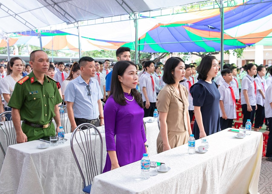 - Các thầy cô giáo là cán bộ, giáo viên, nhân viên và 779 học sinh trường THCS Tràng Cát đã có mặt đông đủ.