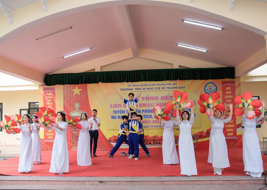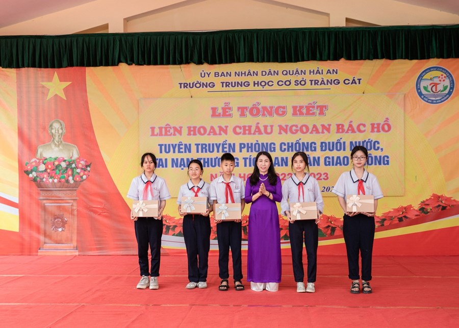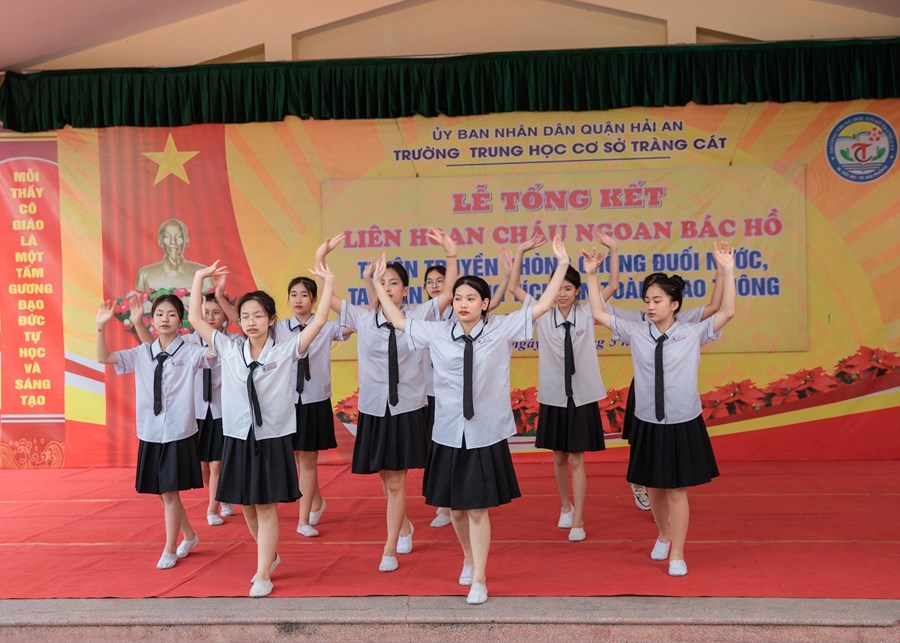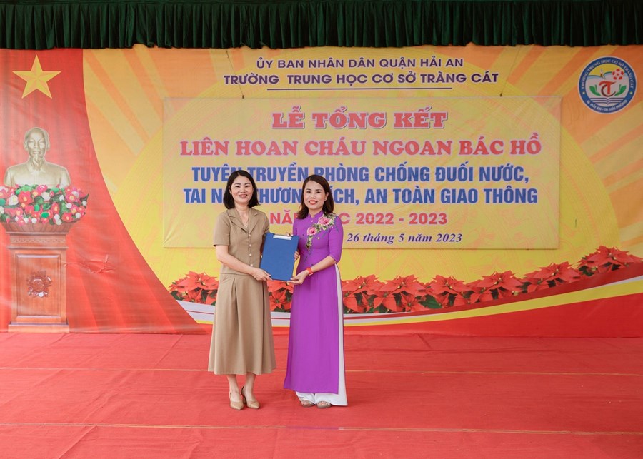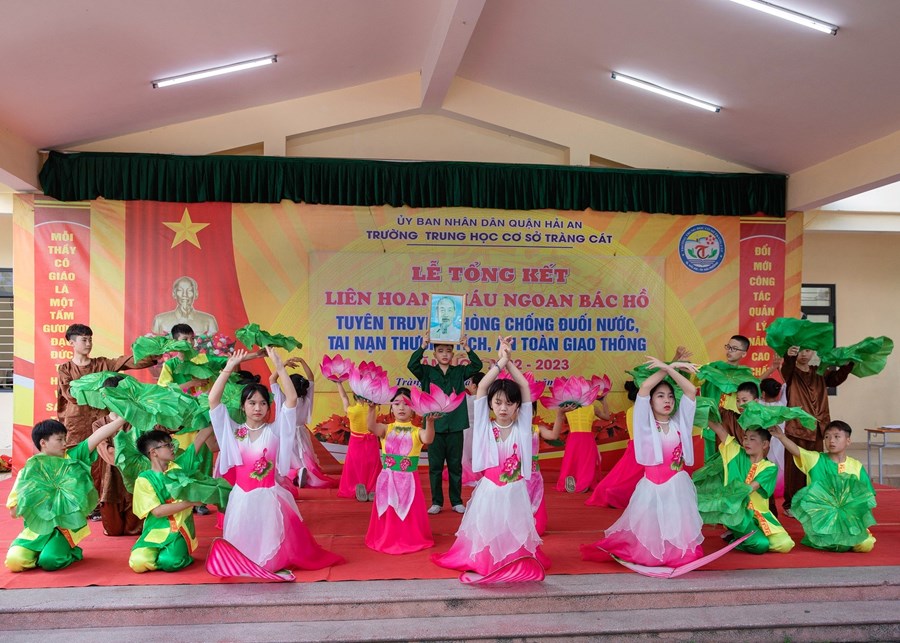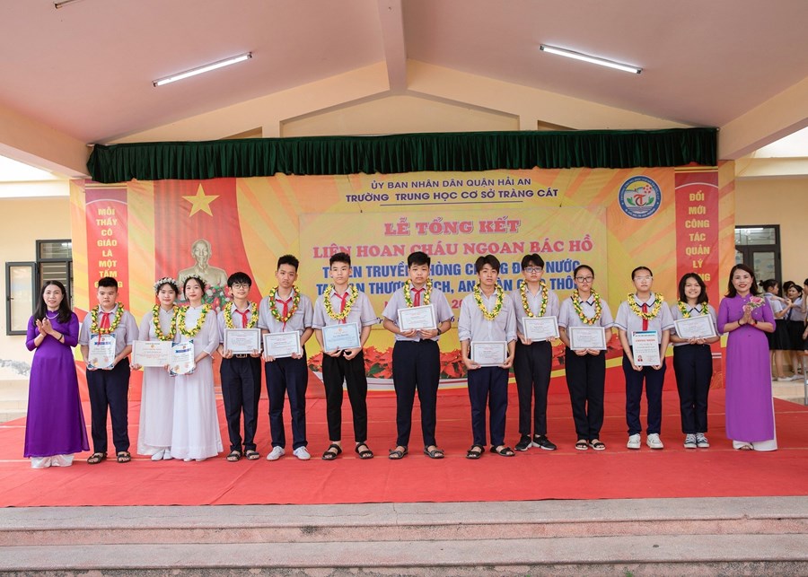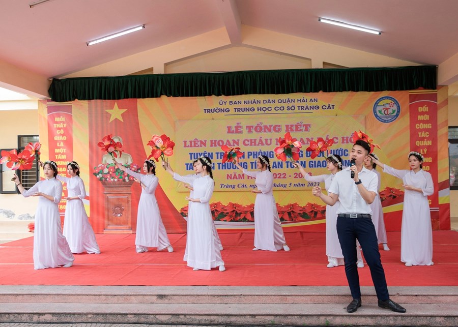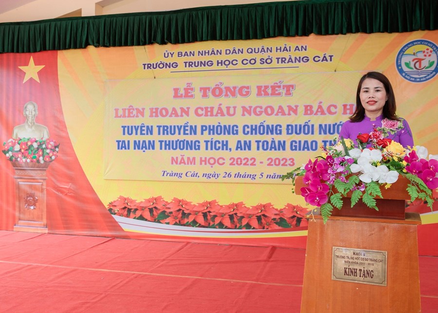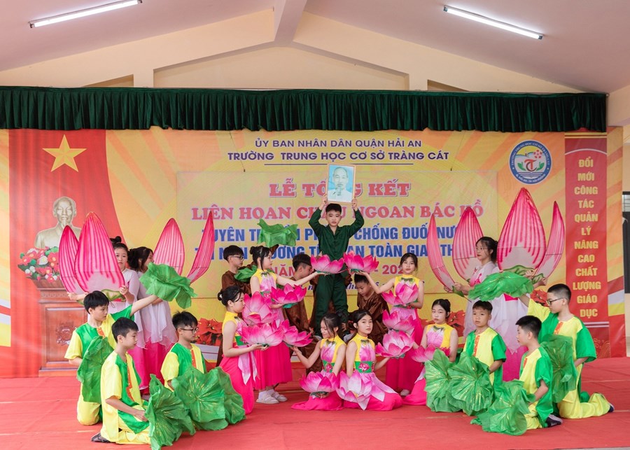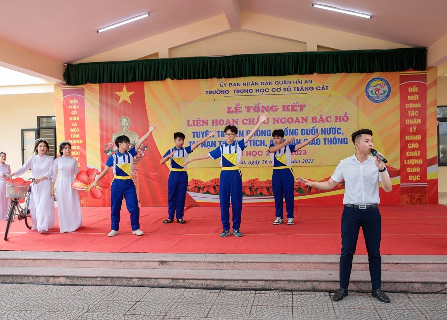 Hòa chung không khí tưng bừng của cả nước và thành phố chào mừng các ngày lễ lớn của tháng 5 lịch sử, chào mừng kỉ niệm 133 năm ngày sinh Chủ tịch Hồ Chí Minh, nhằm động viên, khích lệ kịp thời những thành tích của thầy và trò đạt được trong năm học, sáng ngày 26/5/2023, trường THCS Tràng Cát trang trọng tổ chức lễ tổng kết năm học 2022-2023, Liên hoan cháu ngoan Bác Hồ, kết hợp tuyên truyền phòng chống đuối nước, tai nạn thương tích, an toàn giao thông trong dịp hè.
