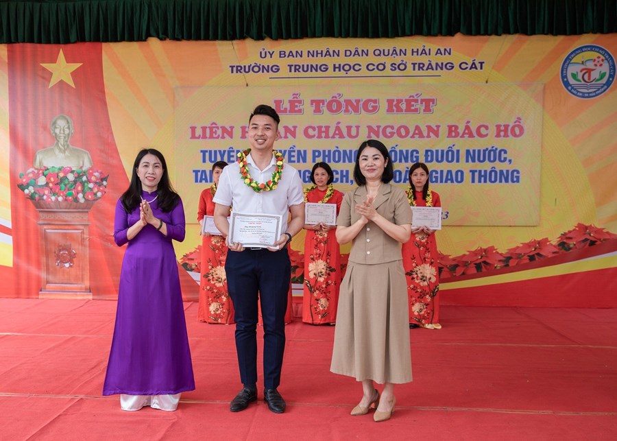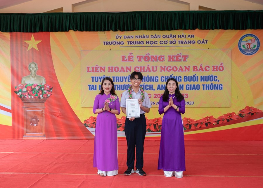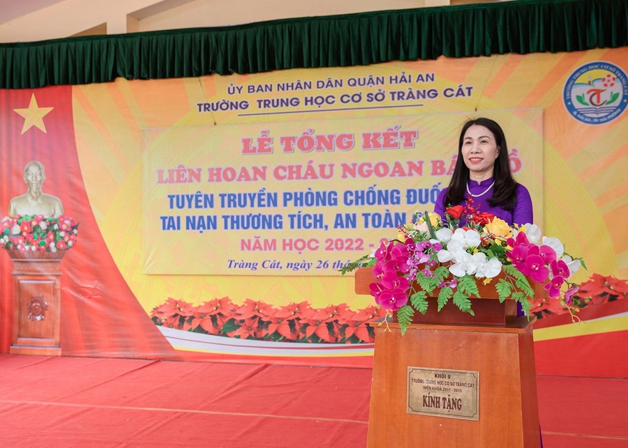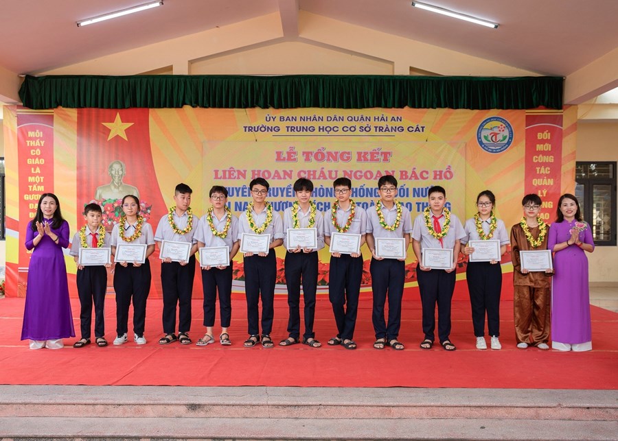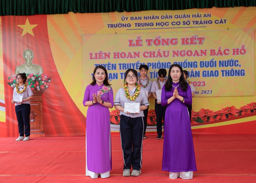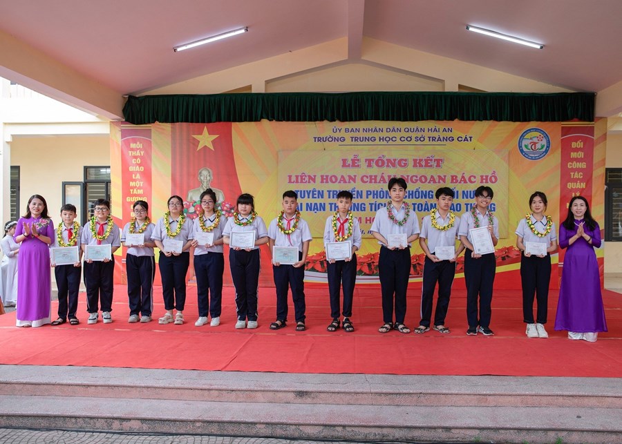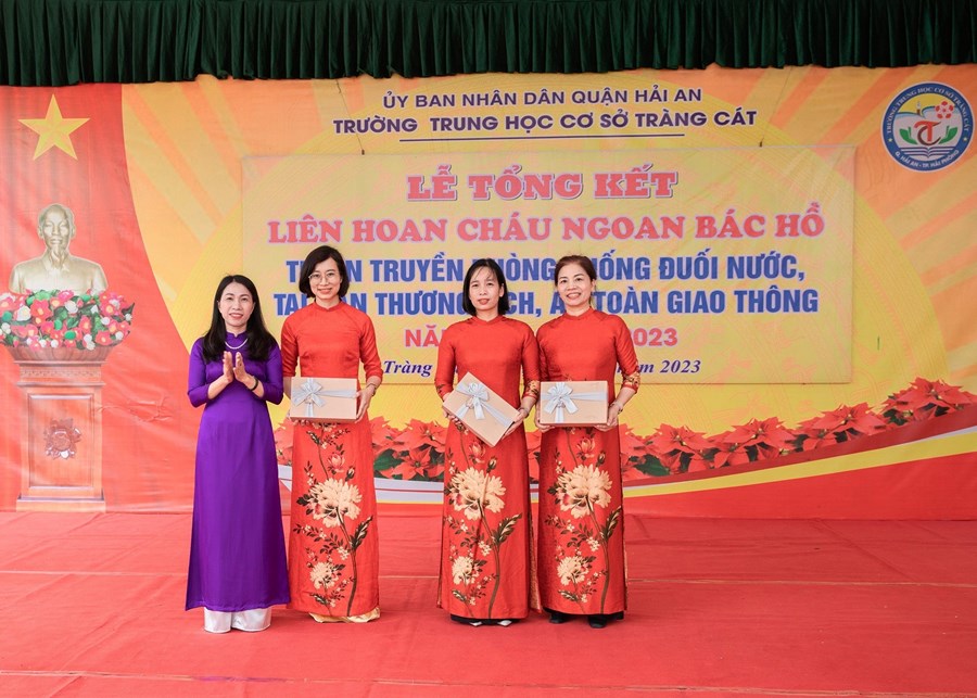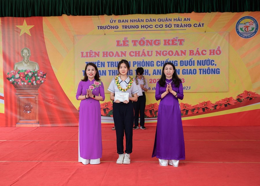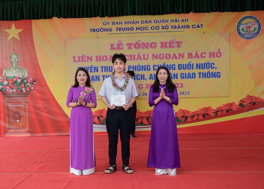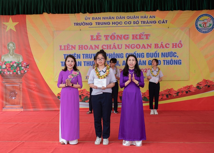 Hòa chung không khí tưng bừng của cả nước và thành phố chào mừng các ngày lễ lớn của tháng 5 lịch sử, chào mừng kỉ niệm 133 năm ngày sinh Chủ tịch Hồ Chí Minh, nhằm động viên, khích lệ kịp thời những thành tích của thầy và trò đạt được trong năm học, sáng ngày 26/5/2023, trường THCS Tràng Cát trang trọng tổ chức lễ tổng kết năm học 2022-2023, Liên hoan cháu ngoan Bác Hồ, kết hợp tuyên truyền phòng chống đuối nước, tai nạn thương tích, an toàn giao thông trong dịp hè.