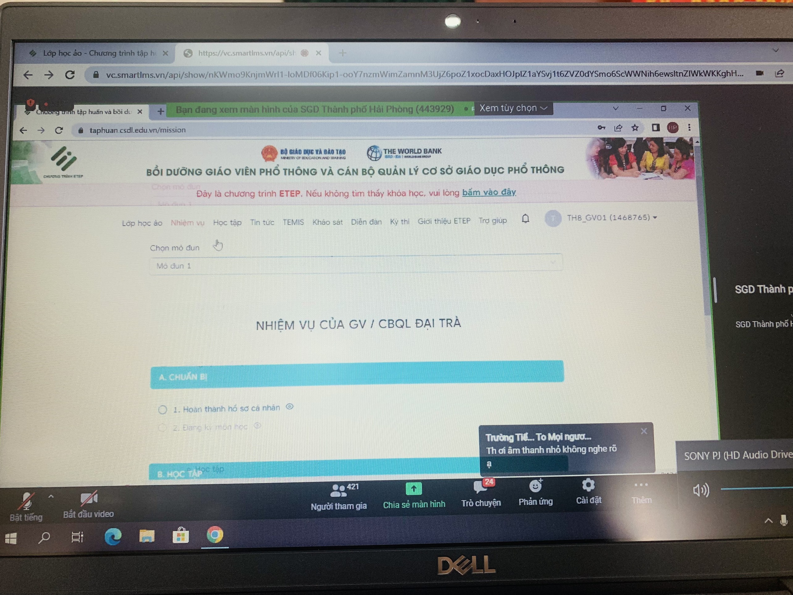 Sáng ngày 07/11/2022, trường THCS Tràng Cát đã tham gia tập huấn trực tuyến đầy đủ, đúng thành phần theo quy định tại lớp học ảo trên hệ thống LMS tại địa chỉ taphuan.CSDL.edu.vn.