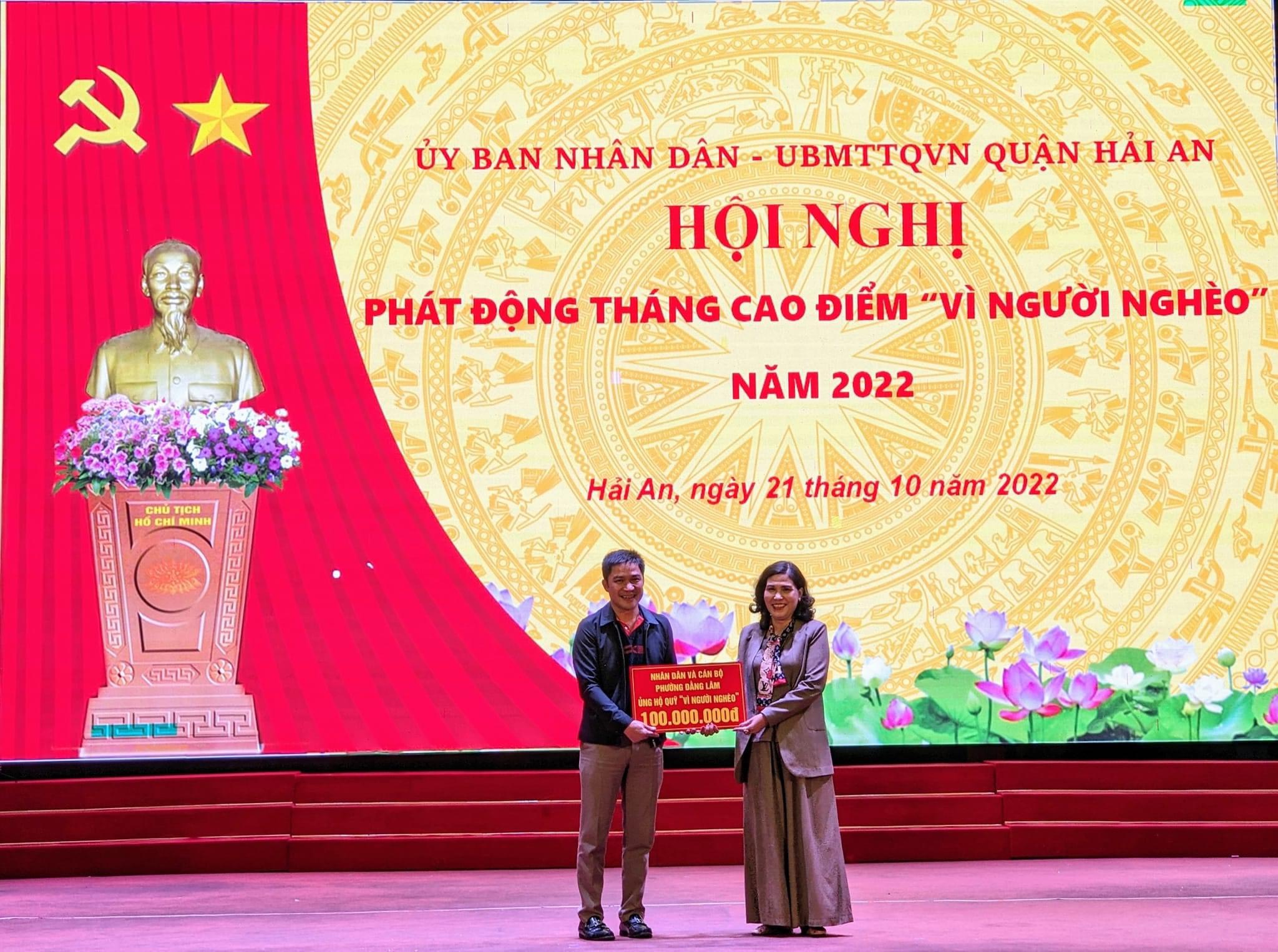 Thực hiện chương trình phối hợp giữa UBND và Uỷ ban MTTQ VN Quận Hải An; Kế hoạch 87/KH -MTTQ-BTT, ngày 7/9/2022 của Ban thường trực Uỷ ban MTTQ VN quận tổ chức các hoạt động Tháng cao điểm " Vì người nghèo" năm 2022; Ban thường trực Uỷ ban MTTQ Việt Nam quận phối hợp với UBND quận tổ chức Hội nghị phát động quỹ "Vì người nghèo" với mục đích phát huy sức mạnh của hệ thống chính trị và toàn xã hội chung tay hưởng ứng ủng hộ quỹ " Vì người nghèo" nhằm hỗ trợ hộ nghèo, cận nghèo góp phần thực hiện mục tiêu giảm nghèo bền vững.