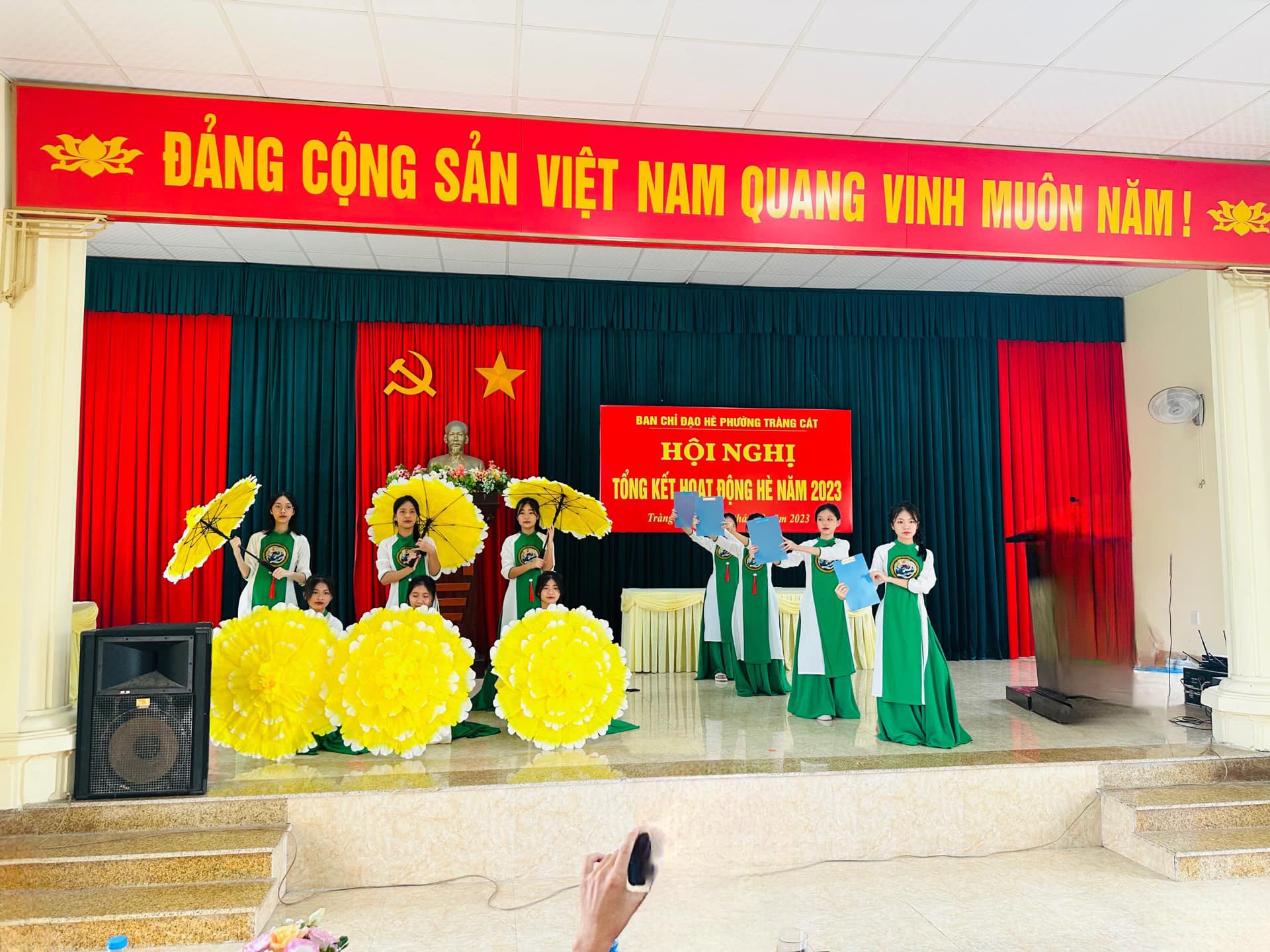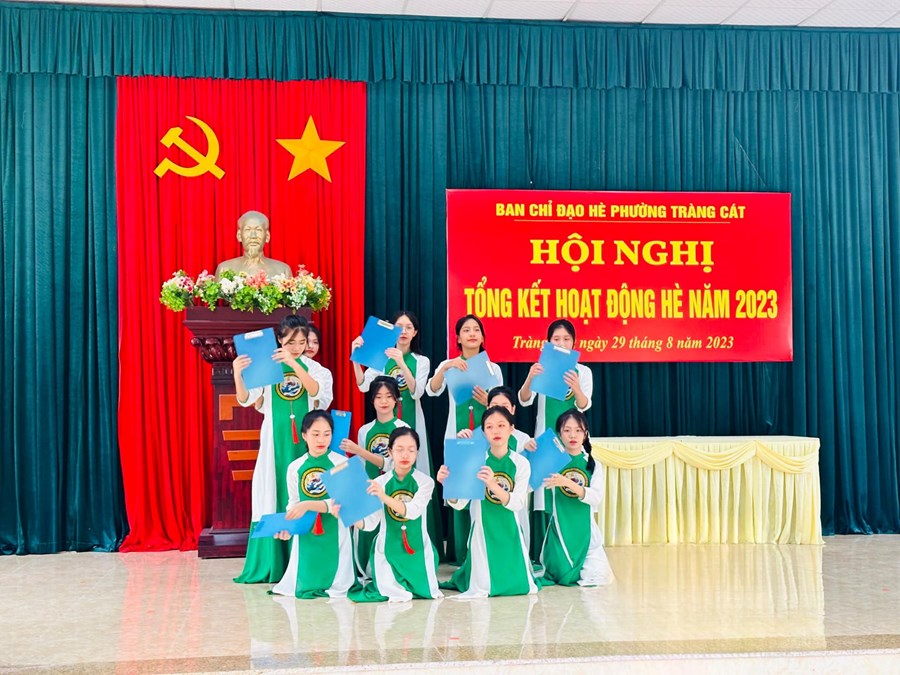 Trong thời gian nghỉ hè, các em học sinh Trường THCS Tràng Cát tích cực tham gia các hoạt động, các câu lạc bộ do Đoàn phường tổ chức và thể hiện tiết mục múa “Em là cô giáo vùng cao” trong buổi tổng kết.