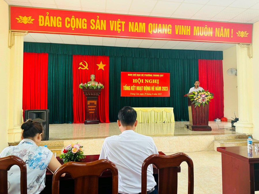 Thực hiện kế hoạch hoạt động hè năm 2023, sáng nay ngày 29 /8/2023, Ban chỉ đạo Hè phường Tràng Cát tổ chức Tổng kết hoạt động hè năm 2023.