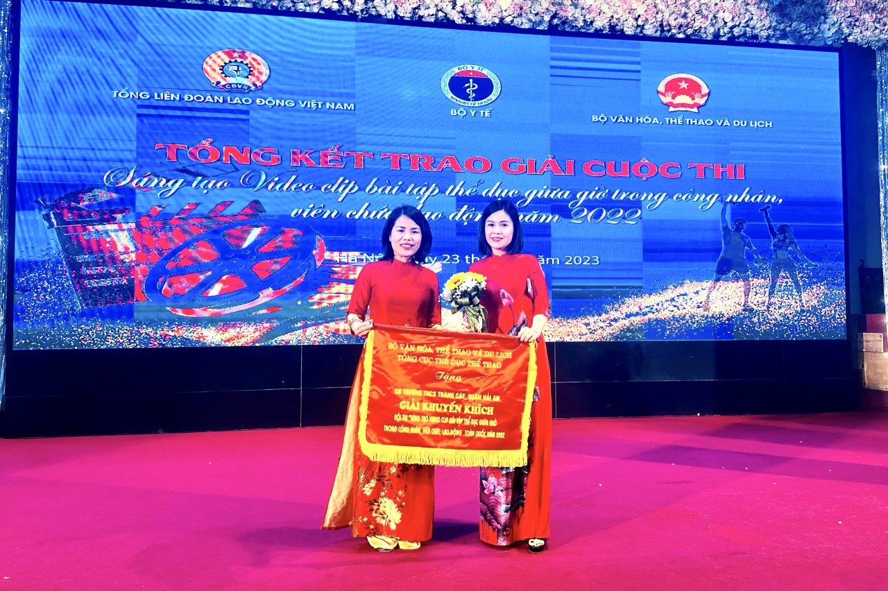 Thực hiện kế hoạch số 307/KH-TCTDTT ngày 03-11-2022 của Tổng cục thể dục thể thao về kế hoạch tổ chức hội thi sáng tạo video clip bài tập thể dục giữa giờ trong công nhân viên chức, lao động toàn quốc năm 2022, trường Trung học cơ sở Tràng Cát thuộc liên đoàn lao động quận Hải an thành phố Hải Phòng đã tham gia dự thi bài thể dục giữa giờ. CĐ nhà trường rất vinh dự được là 1 trong 33 đơn vị đạt giải trên 2.454 đơn vị dự thi và là đơn vị duy nhất thuộc LĐLĐ TP Hải Phòng đạt giải.