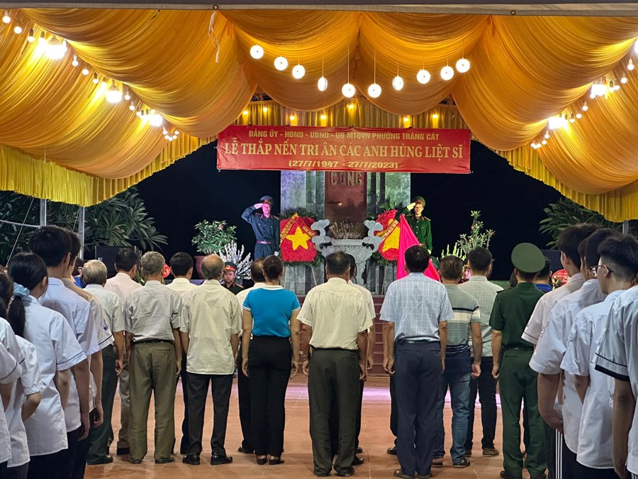 Tại buổi lễ, các đồng chí lãnh đạo, cán bộ các phòng, ban, ngành, đoàn thể, giáo viên, học sinh, nhân dân trên địa bàn phường Tràng Cát kính cẩn nghiêng mình tri ân công lao các anh hùng, liệt sĩ đã ngã xuống để bảo vệ nền độc lập dân tộc. Sự hy sinh của các anh luôn nhắc nhở thế hệ hôm nay và mai sau ý thức trách nhiệm, học tập, lao động, cống hiến, xây dựng đất nước hoà bình, phồn vinh