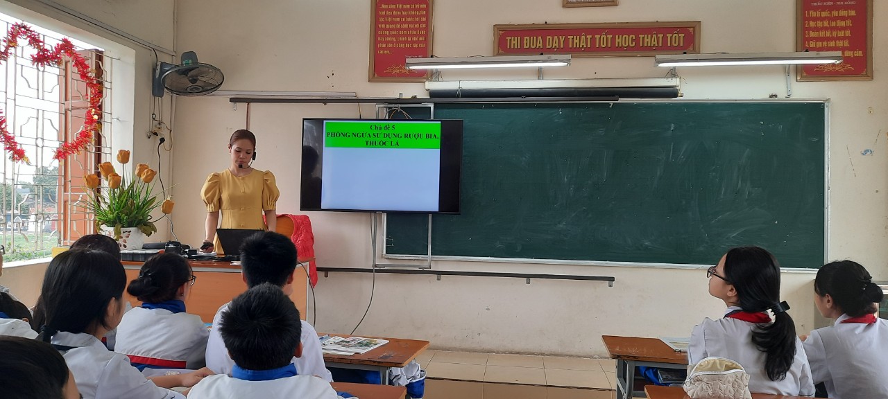 Thực hiện kế hoạch hoạt động của Sở GD&ĐT và Tổ chức cứu trợ trẻ em quốc tế về việc tổ chức các hoạt động tuyên truyền sức khỏe dinh dưỡng học đường cho học sinh theo từng quý, ngày 14/4/2023, trường THCS Tràng Cát tổ chức giảng dạy các tiết học ngoại khóa về sức khỏe và dinh dưỡng học đường nhằm tuyên truyền về sức khỏe răng miệng, an toàn thực phẩm, dinh dưỡng, phòng chống ma túy, thuốc lá, rượu bia…tới các em học sinh.